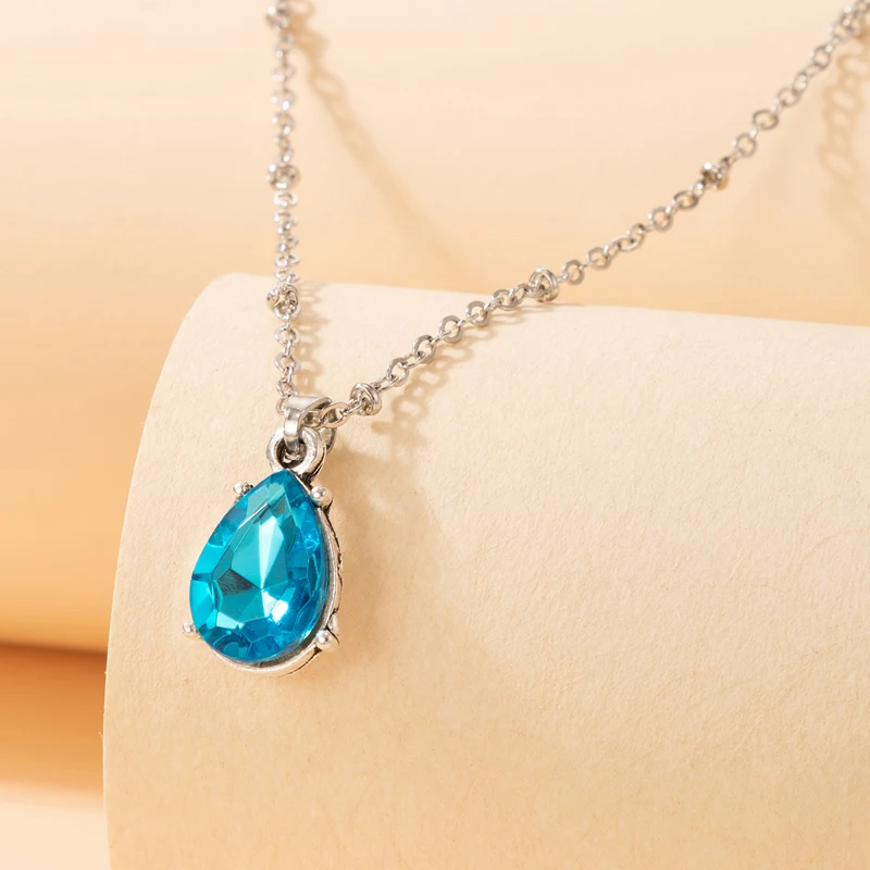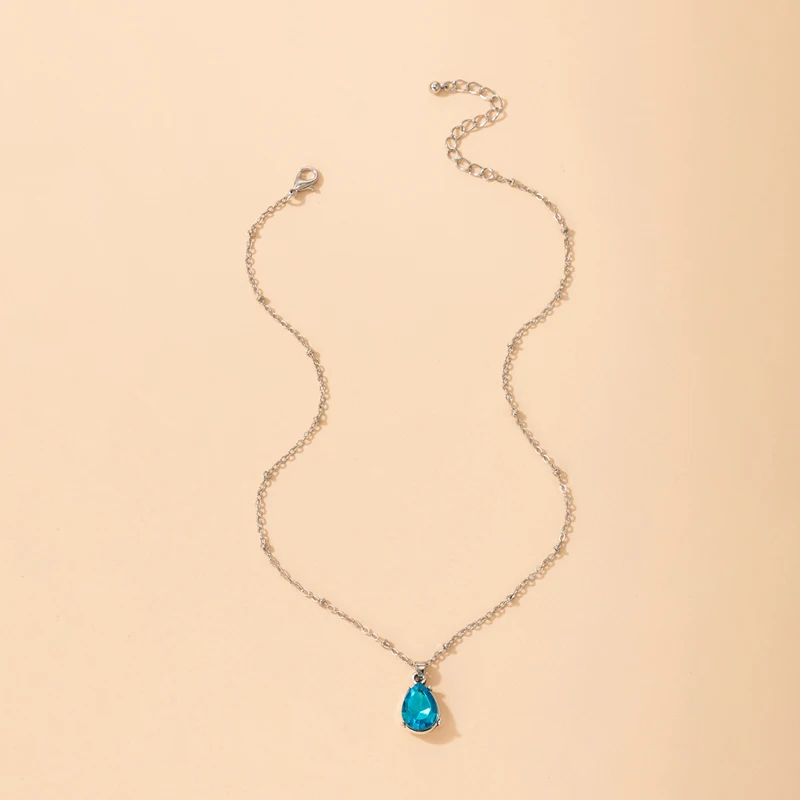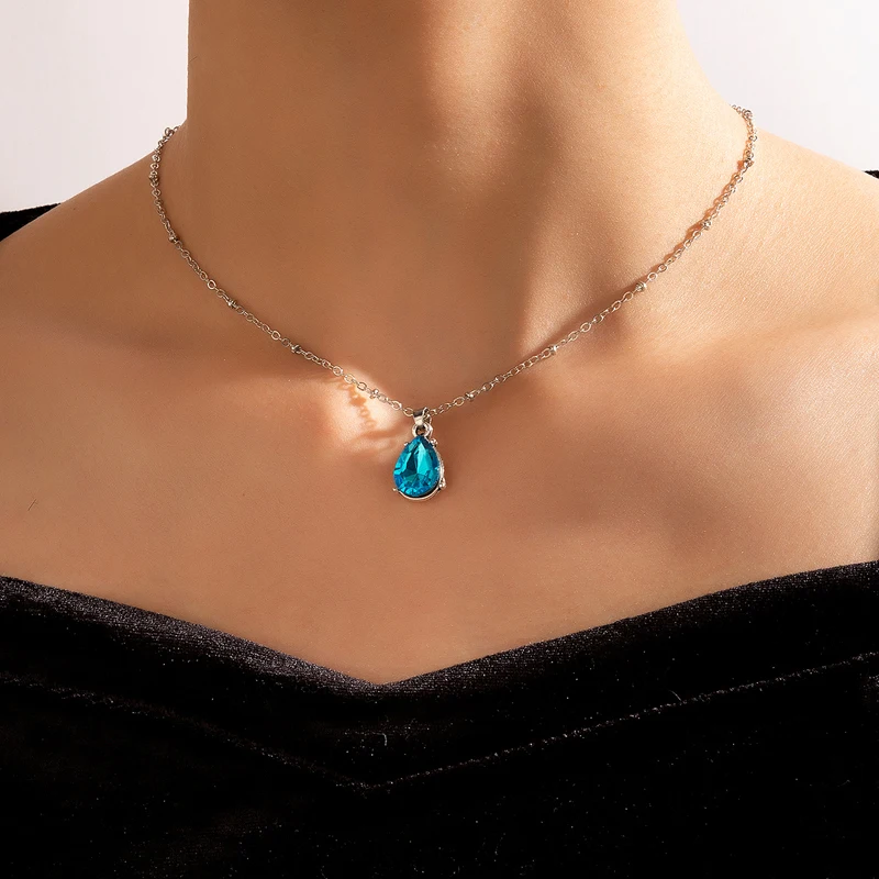 Fleepmart Luxury Water Drop Crystal Stone Pendant Neckalce for Women Elefant Silver Alloy Metal Wedding Jewelry чокер