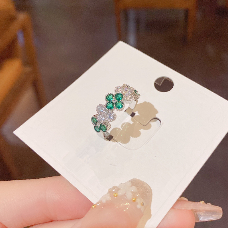 Fleepmart Luxury White Green Zircon Crystal Open Rings For Women Delicate Simple Classic New Fashion Jewelry Ring