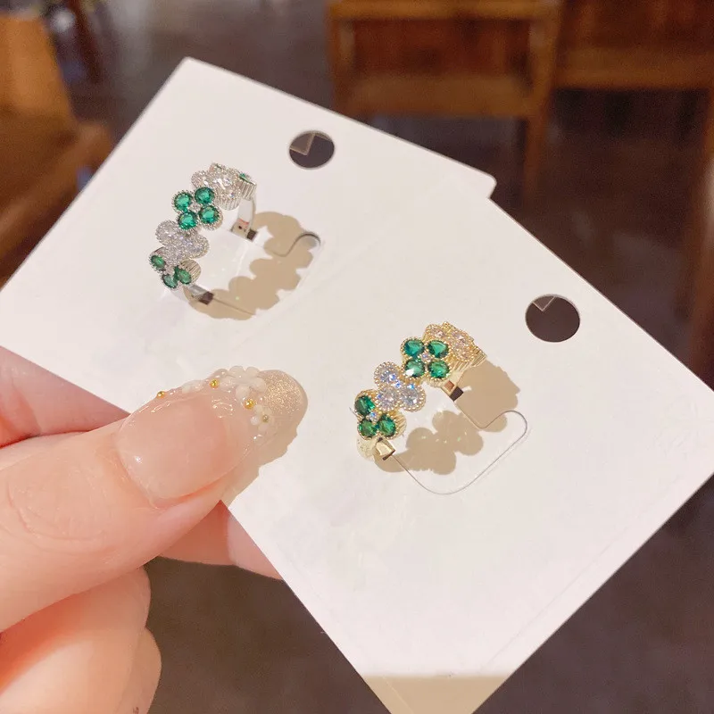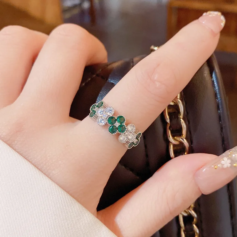 Fleepmart Luxury White Green Zircon Crystal Open Rings For Women Delicate Simple Classic New Fashion Jewelry Ring