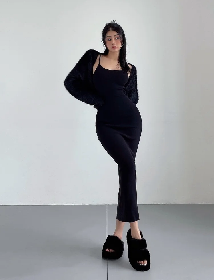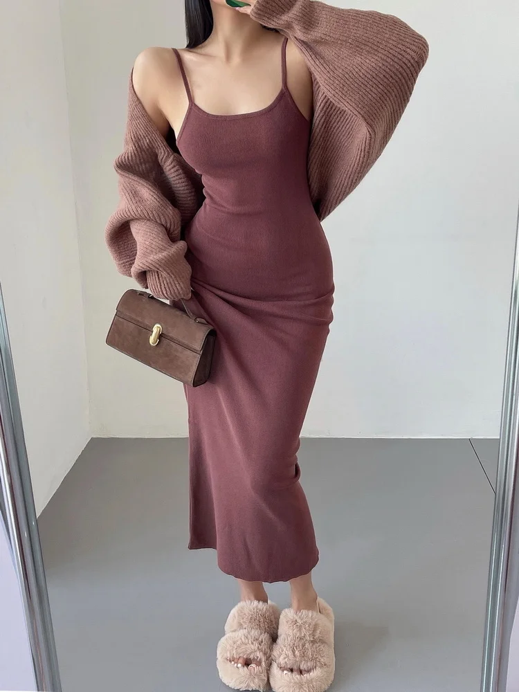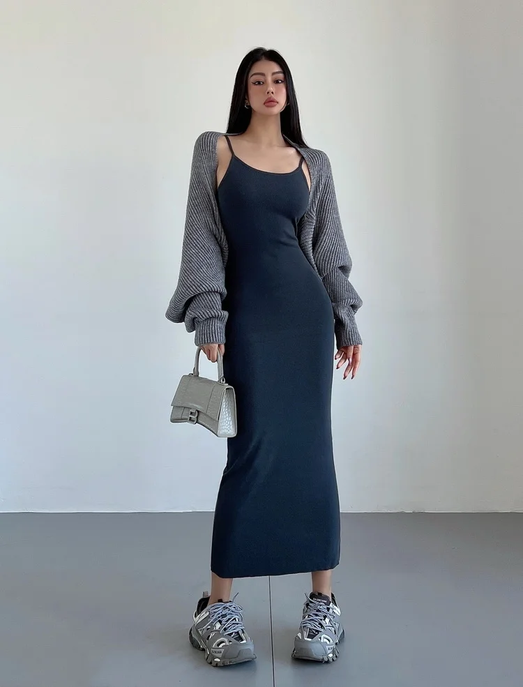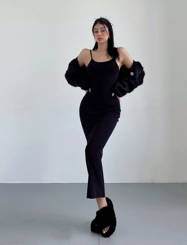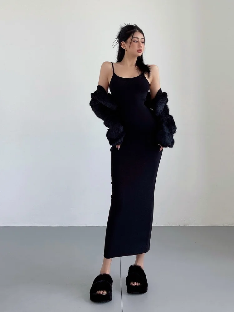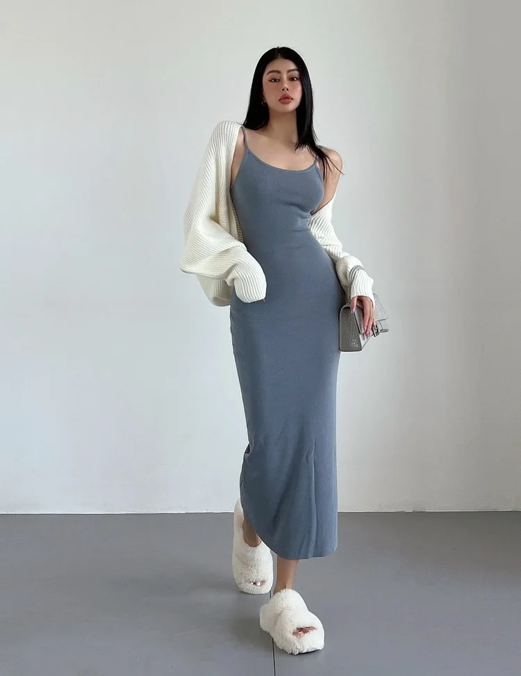 Fleepmart Maxi Long Dress Sexy Slim Wrap Hip Dresses Thin Sleeveless Sling Robe Fashion Sweet Women Tops 2023 Spring
