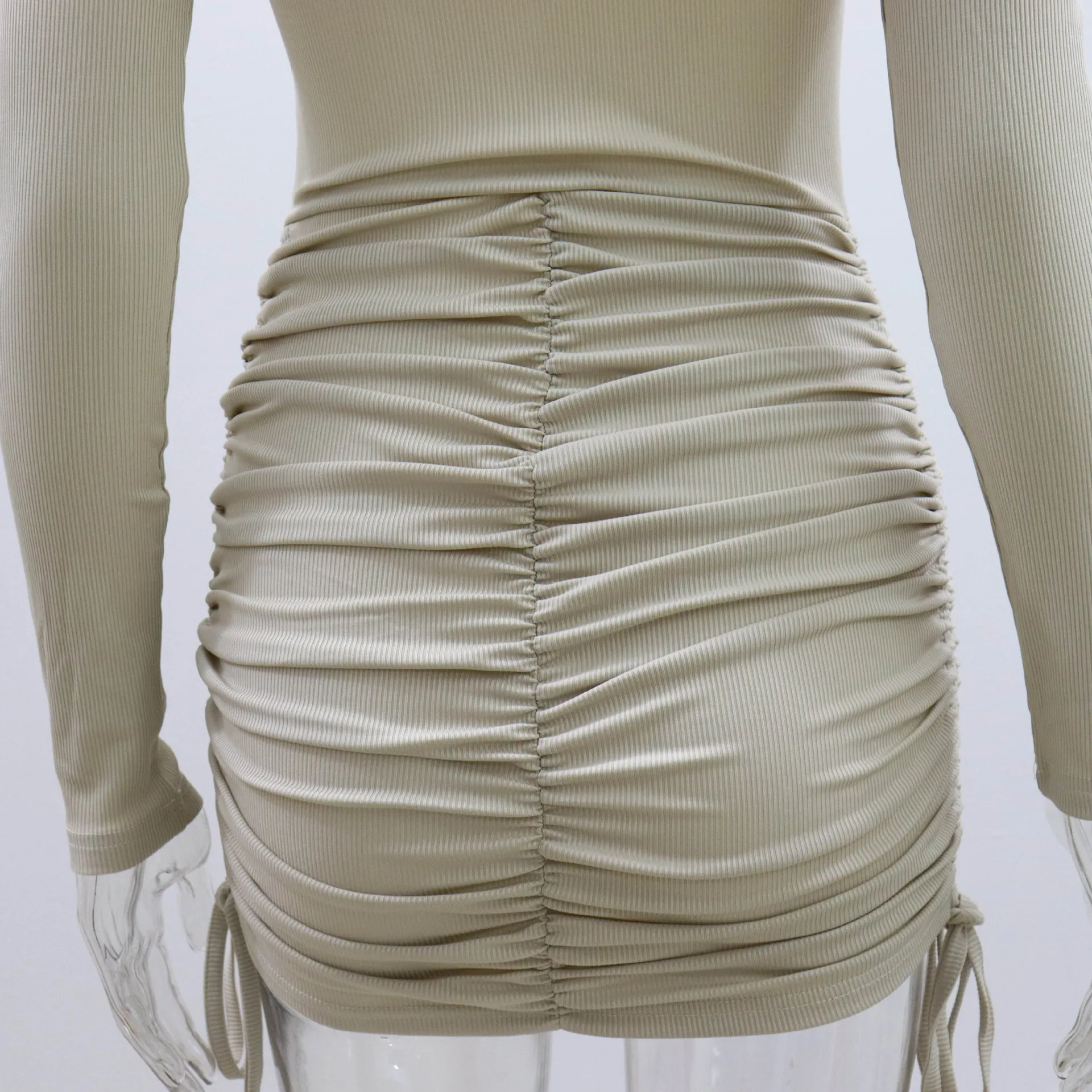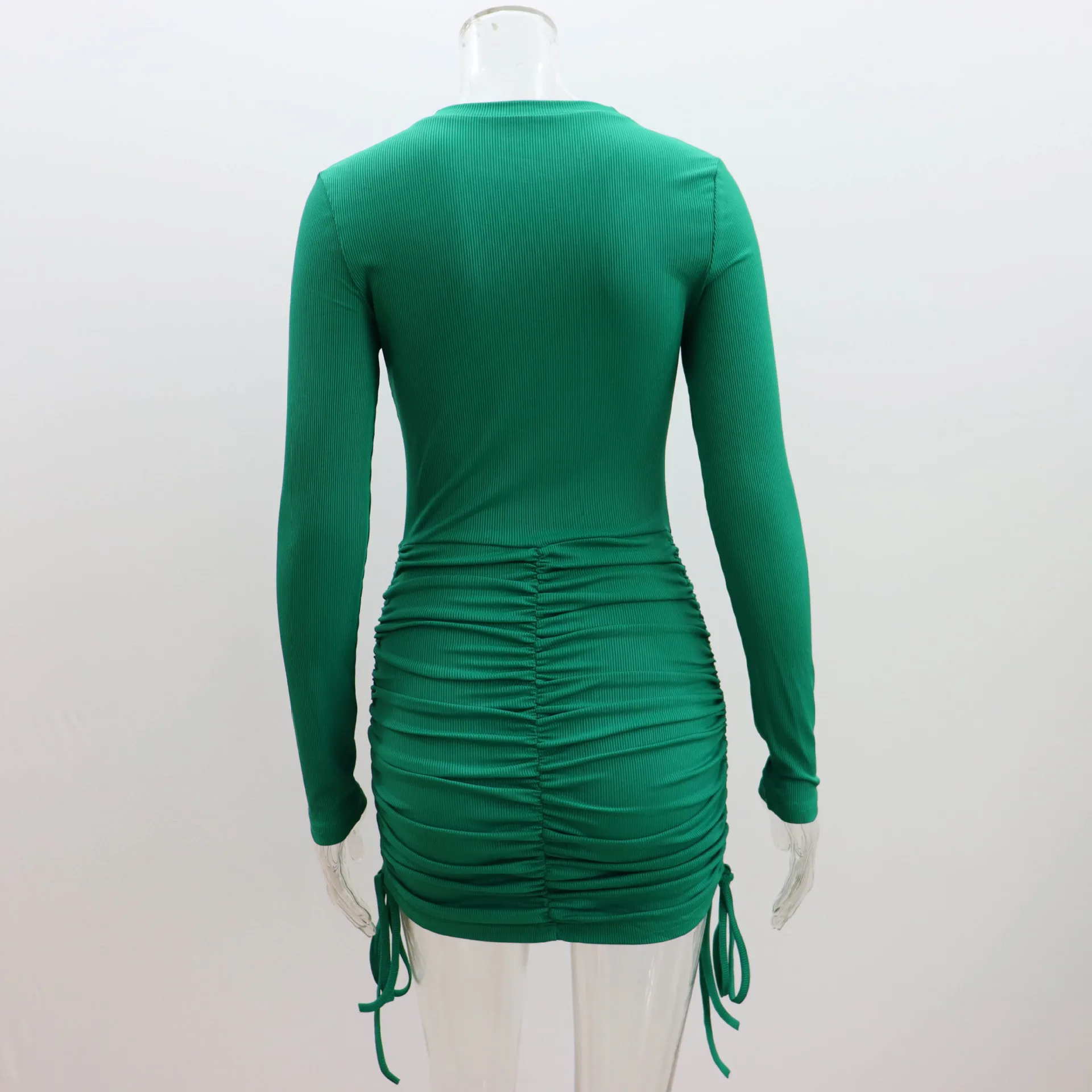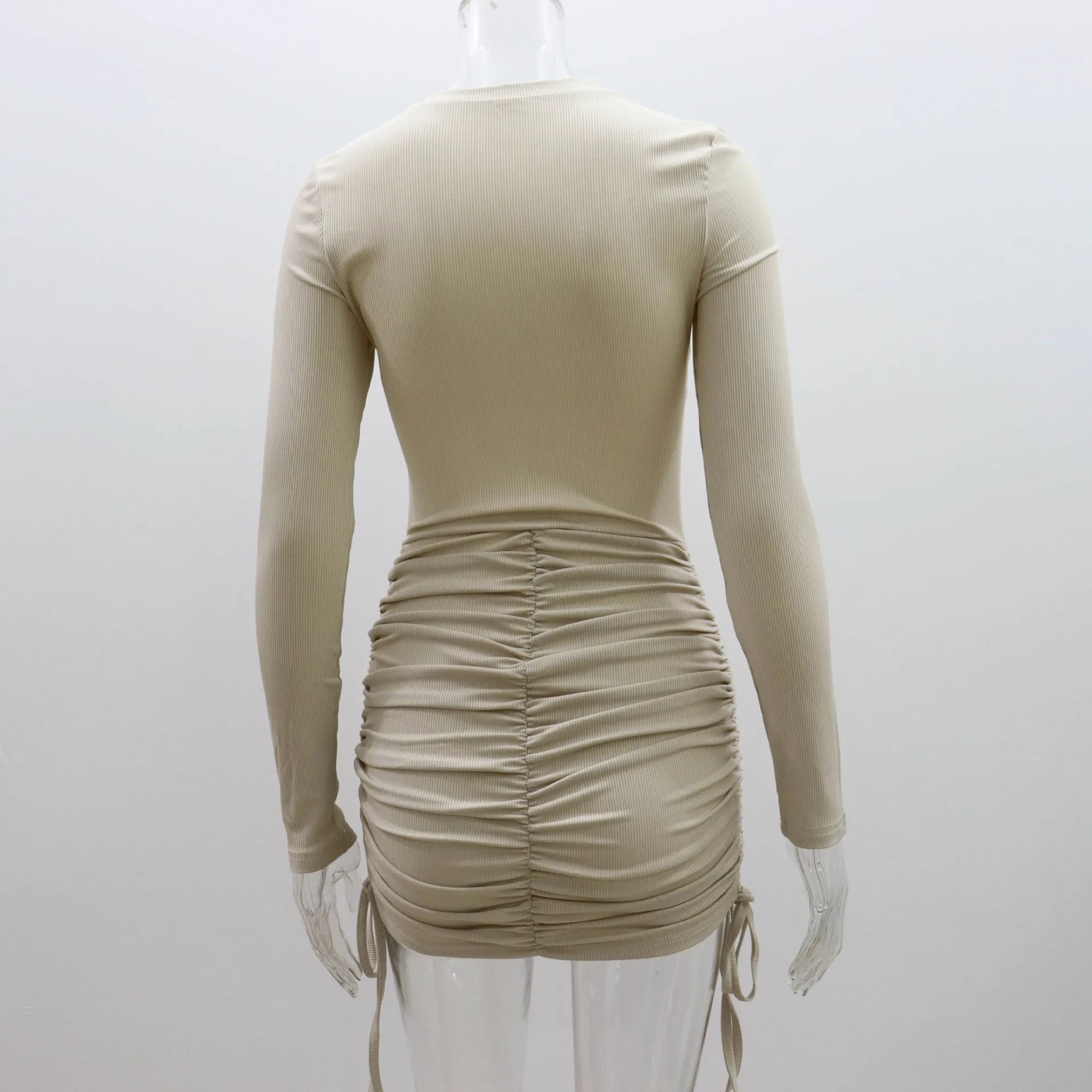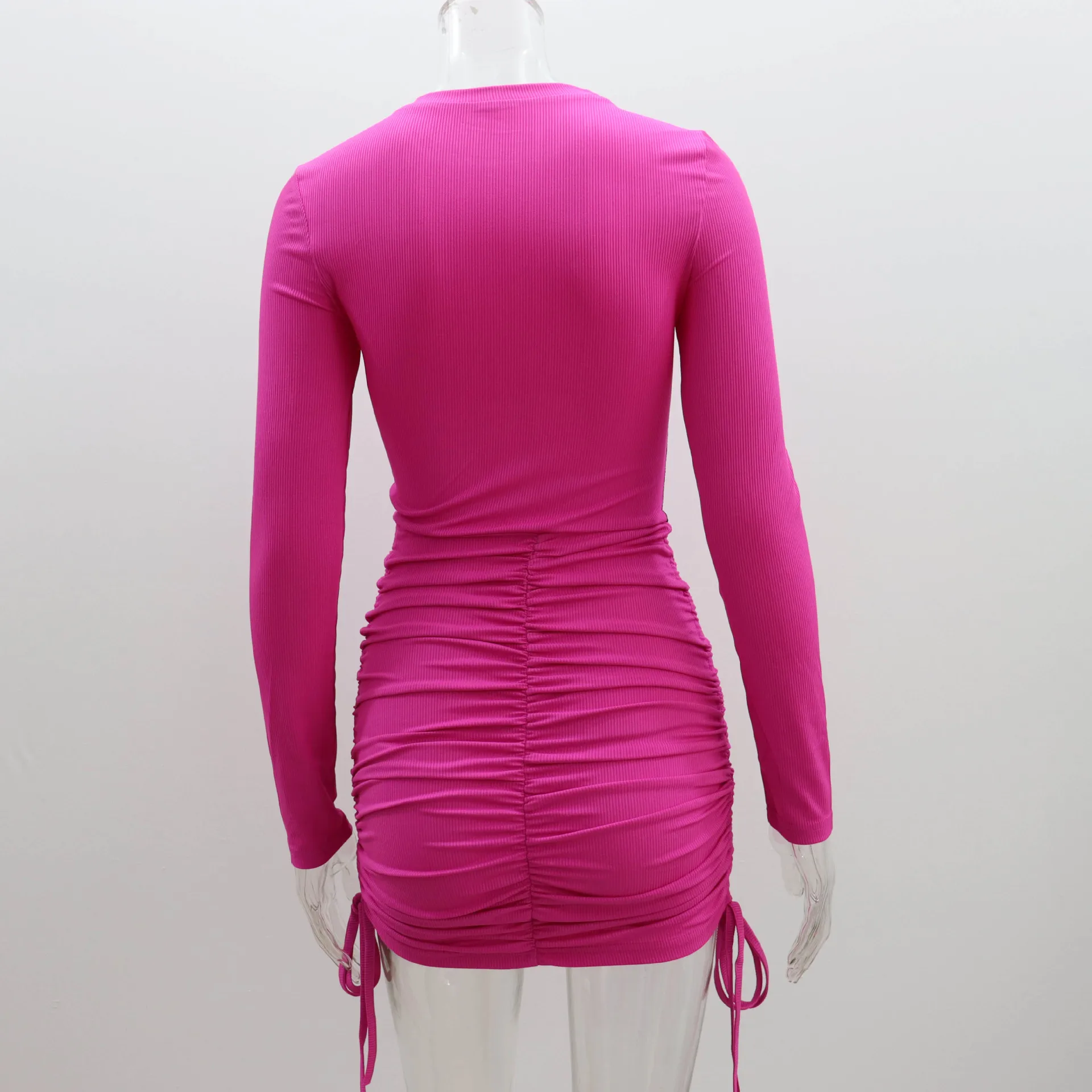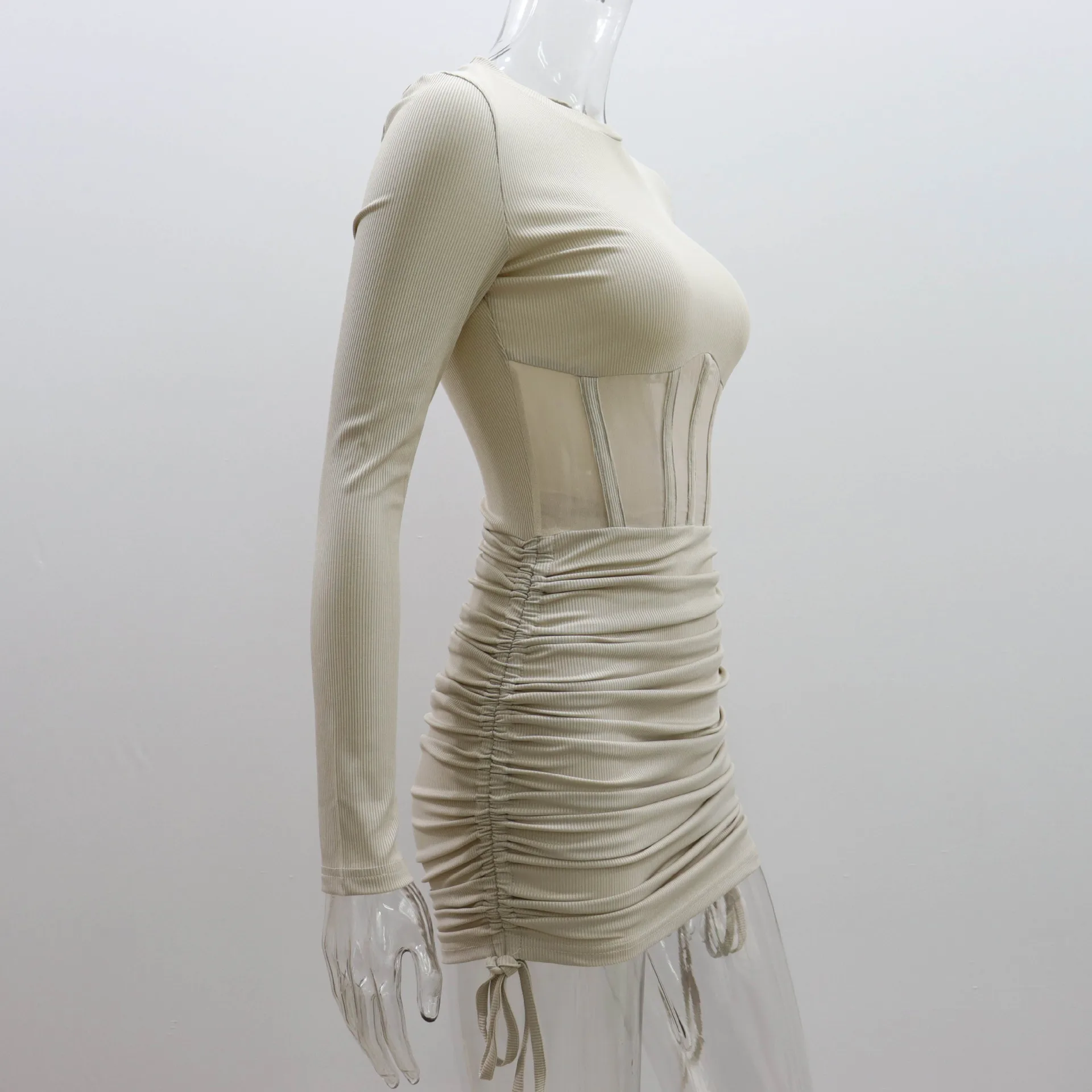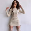 Fleepmart Mesh Hollow Out Bodycon Women O Neck Long Sleeve Mini Ribbed Hot Sexy Dress High Street Wear