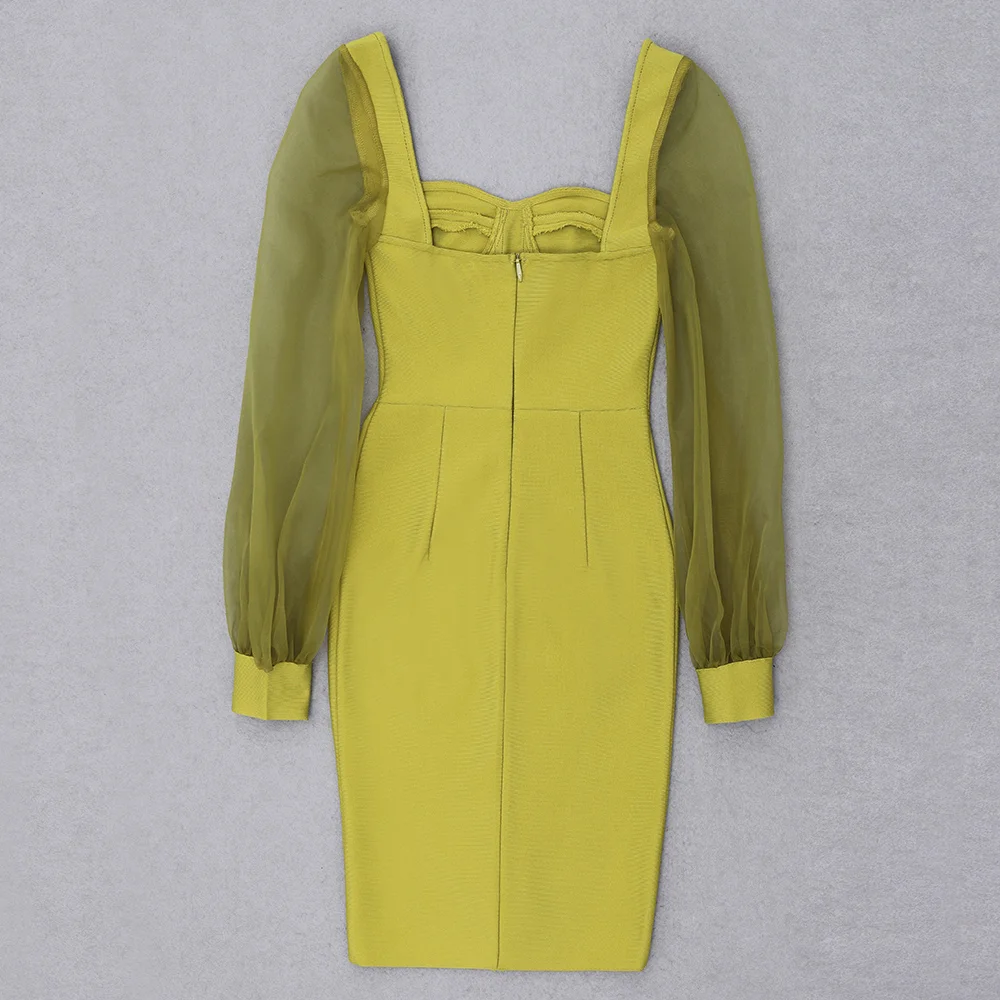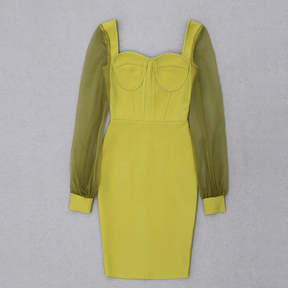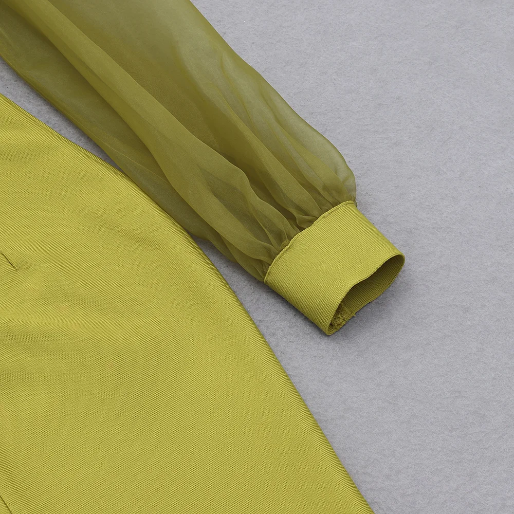 Fleepmart Mesh Long Sleeve Bandage Dress 2022 Spring Women Green Bandage Dress Bodycon Mini Sexy Party Dress Evening Birthday Club Outfits