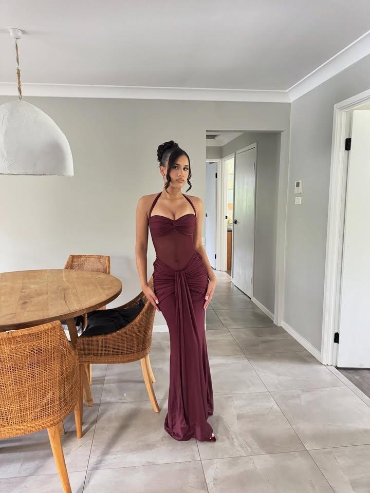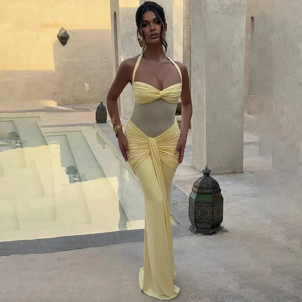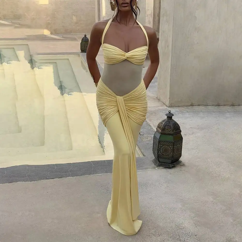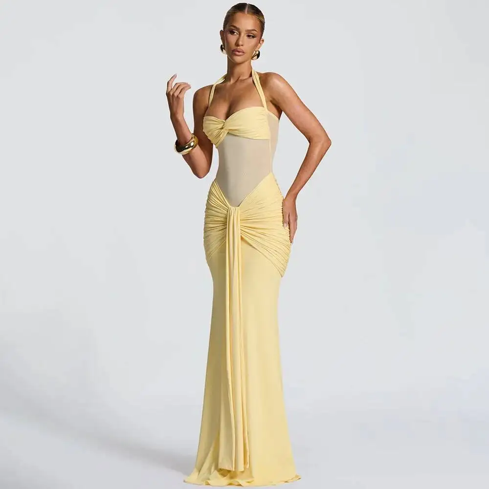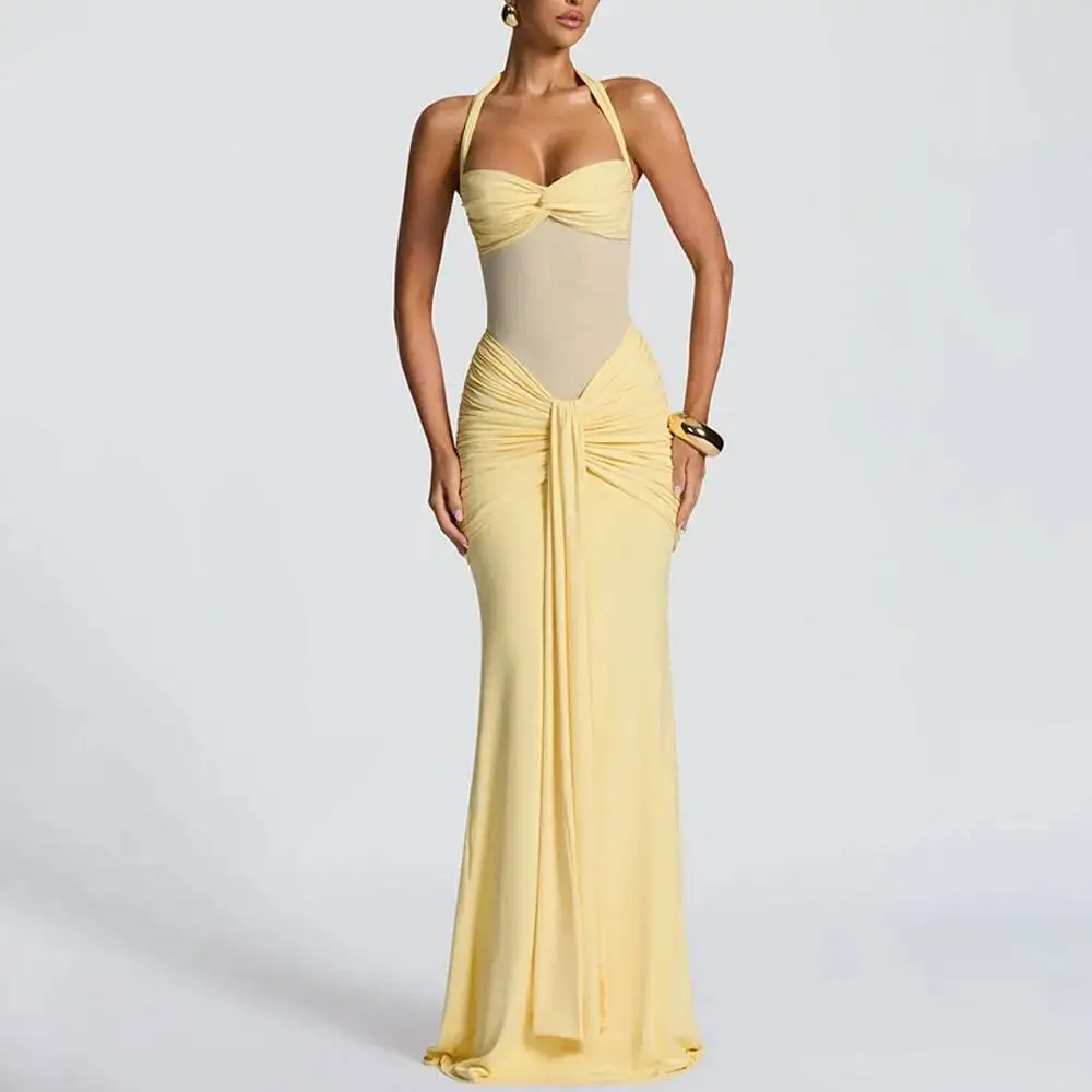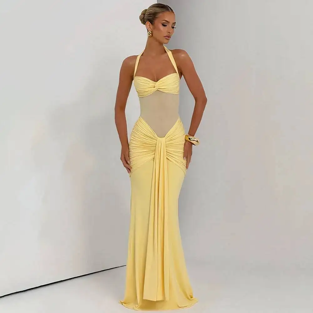 Fleepmart Mesh Patchwork Perspective Party Sexy Dresses Halter Sleeveless Elegant Long Dress Women 2025 Summer Dress Vestidos