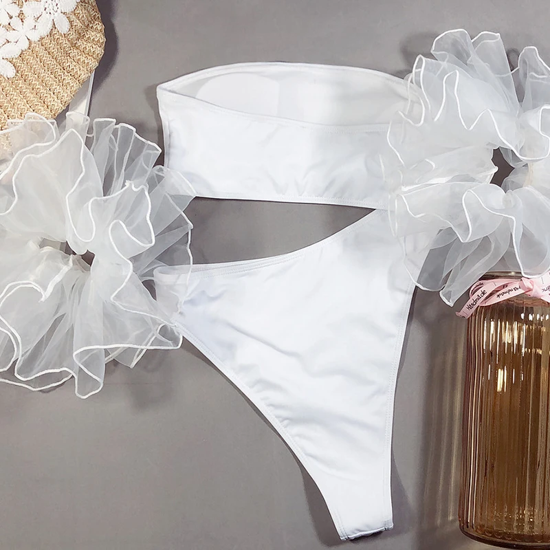 Fleepmart Mesh ruffle swimsuit female Sexy bandeau bikini 2023 Strapless swimwear women High waist bikini set Black pink bathing suitThere are no reviews yet