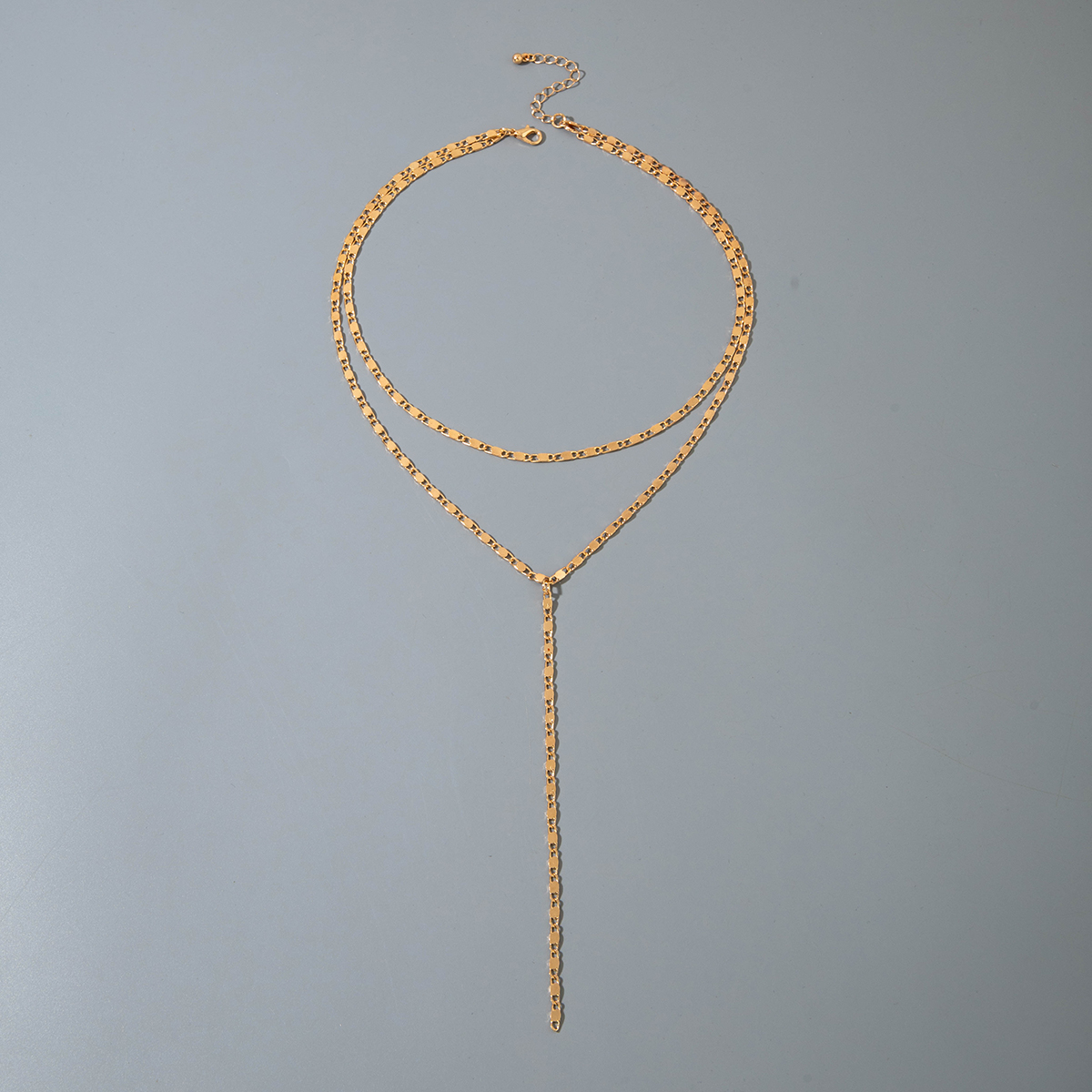Fleepmart Metal Y-shaped Chain Double Layered Fringe Necklace Gold Color Chaoker Fashion Jewelry Long Neckalce Sets for Women