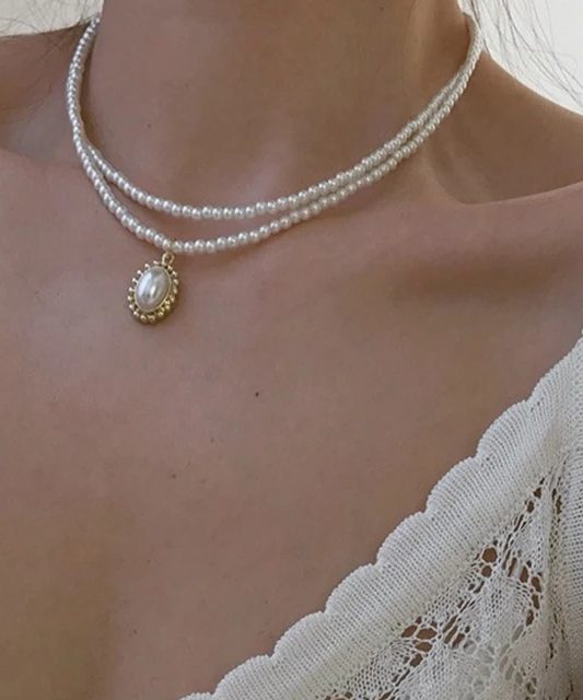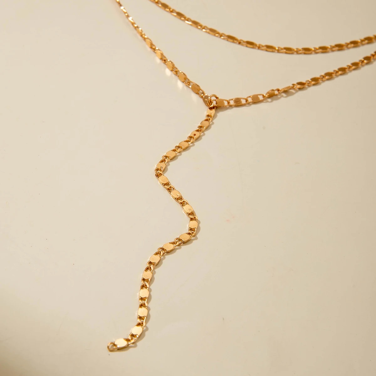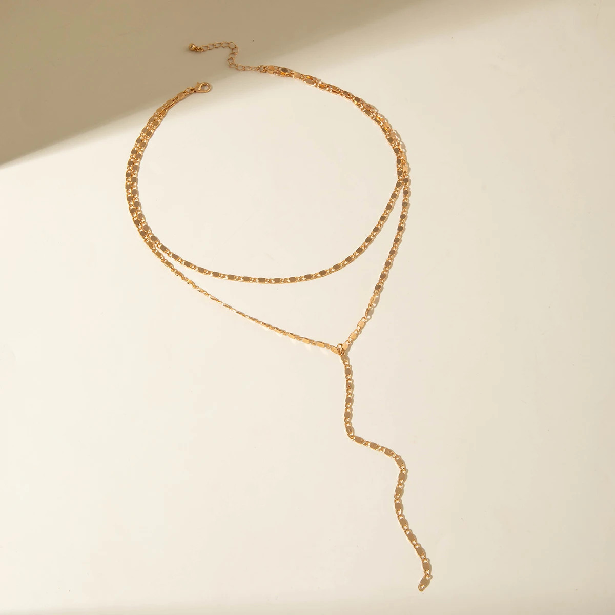 Fleepmart Metal Y-shaped Chain Double Layered Fringe Necklace Gold Color Chaoker Fashion Jewelry Long Neckalce Sets for Women