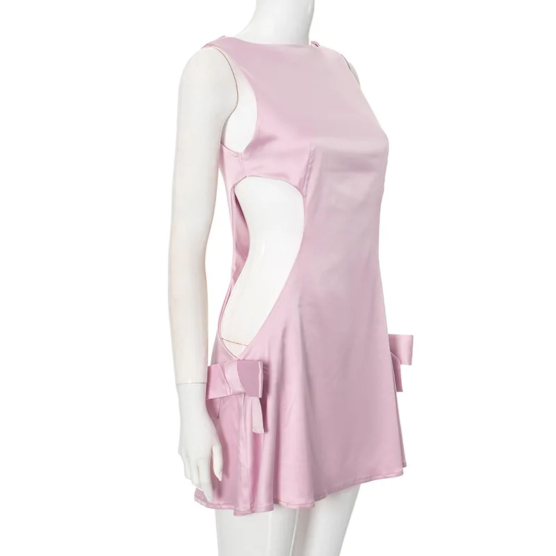 Fleepmart Mini women Sexy Waistless Sleeveless Hollow Bows Tank Elegant Evening Solid Summer New Dress