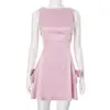 Fleepmart Mini women Sexy Waistless Sleeveless Hollow Bows Tank Elegant Evening Solid Summer New Dress