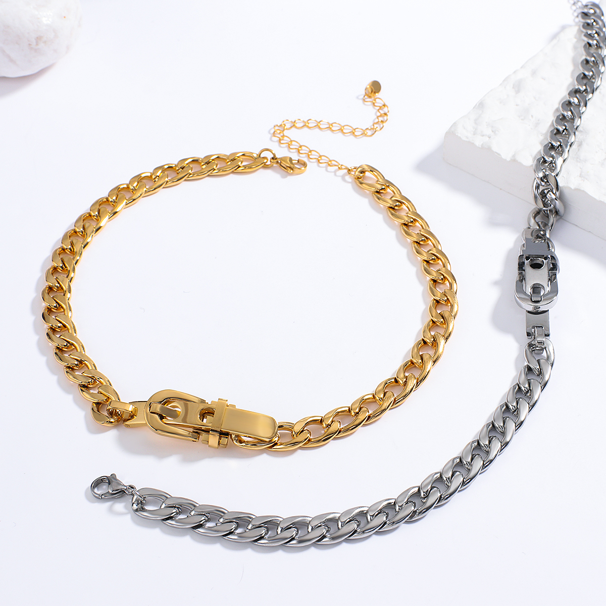 fleepmart Minimalist 18k Real Gold Plated Belt Buckle Stainless Steel Necklace for Women Men Hip Hop Simple Thick Chain Necklace