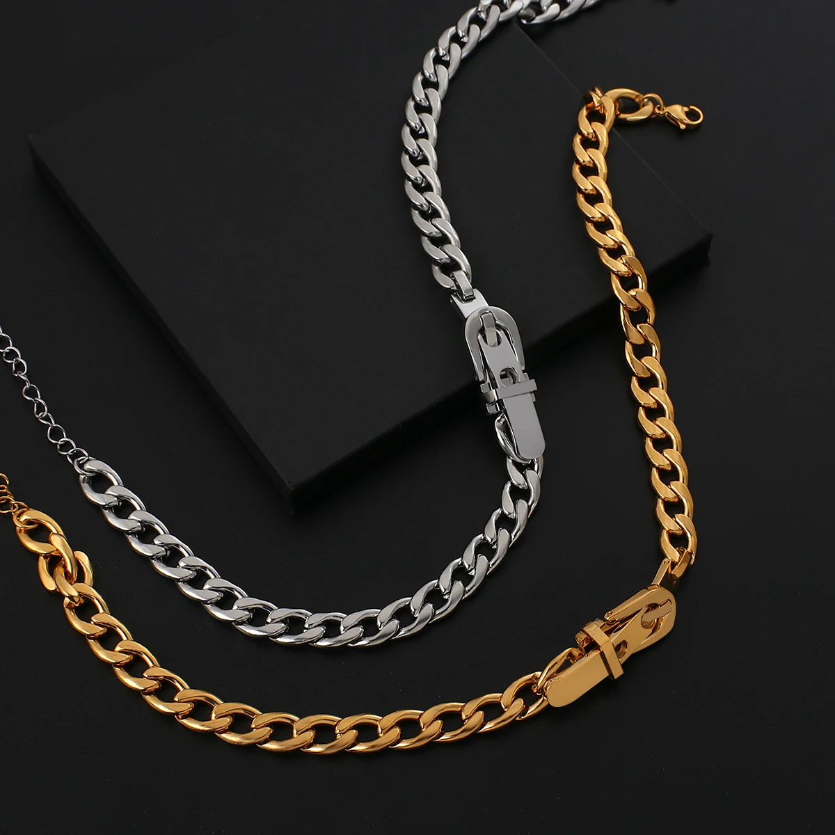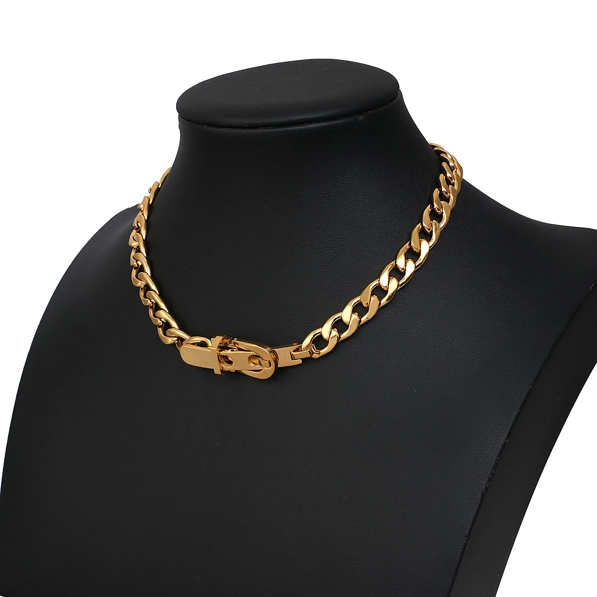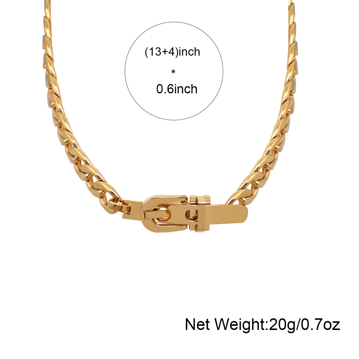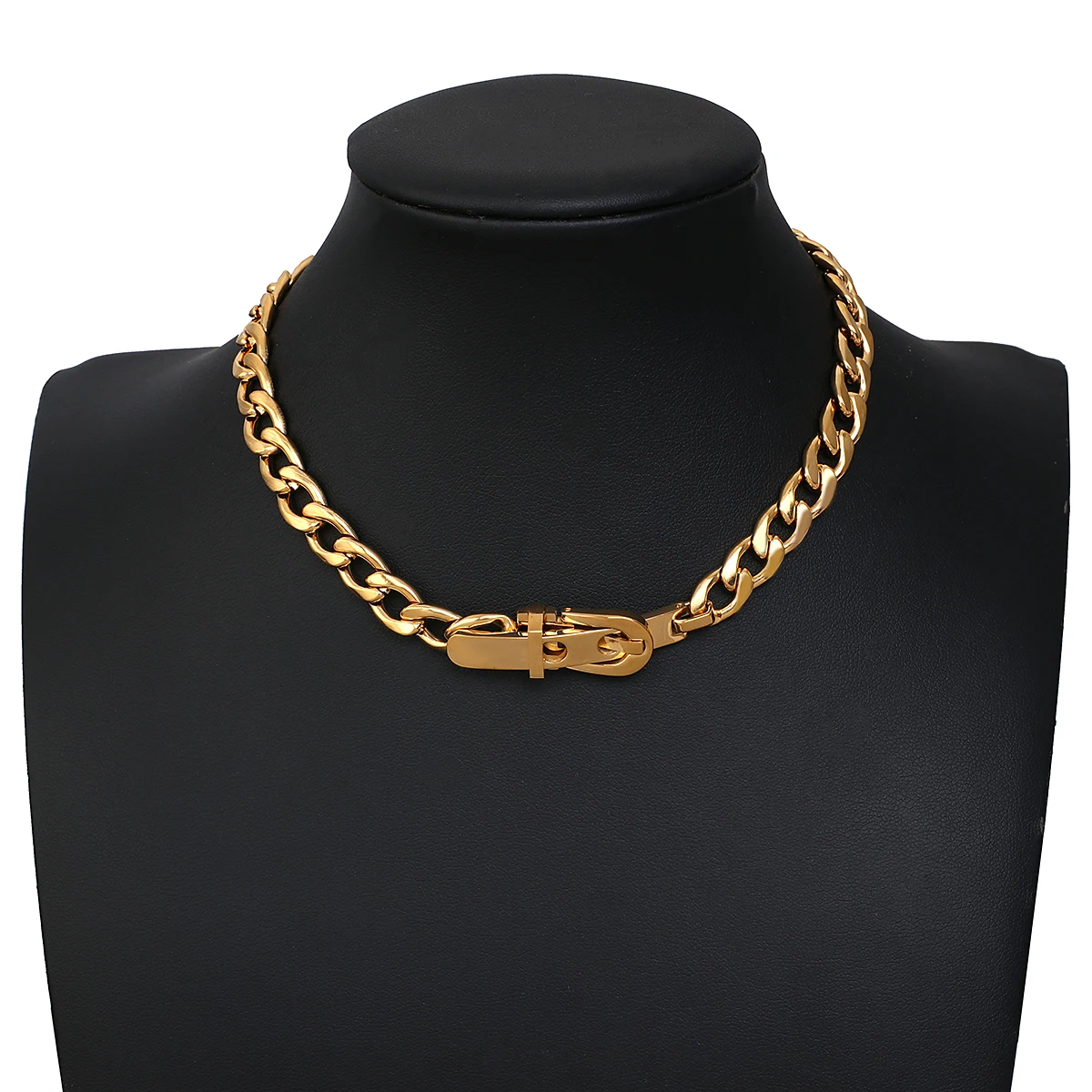 fleepmart Minimalist 18k Real Gold Plated Belt Buckle Stainless Steel Necklace for Women Men Hip Hop Simple Thick Chain Necklace