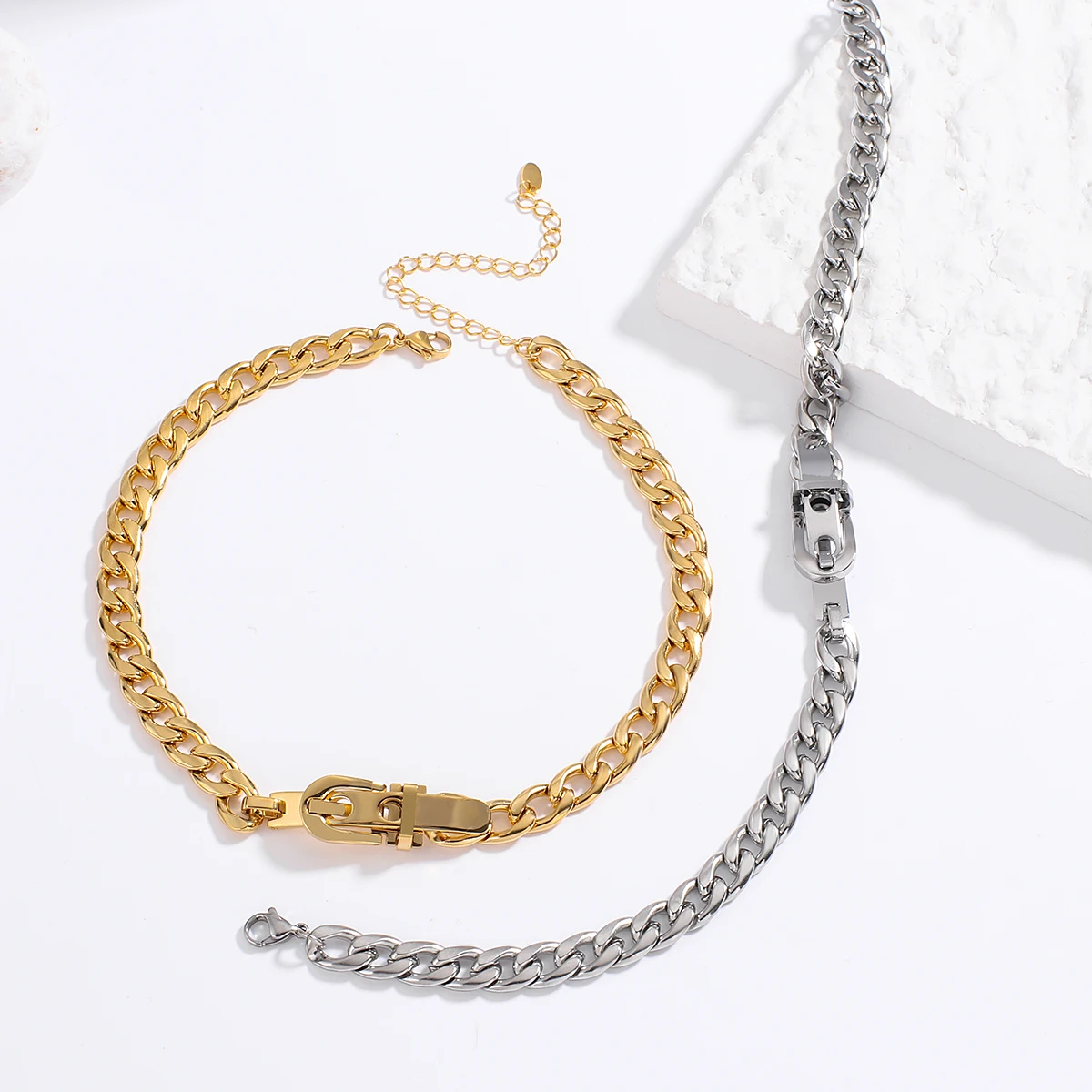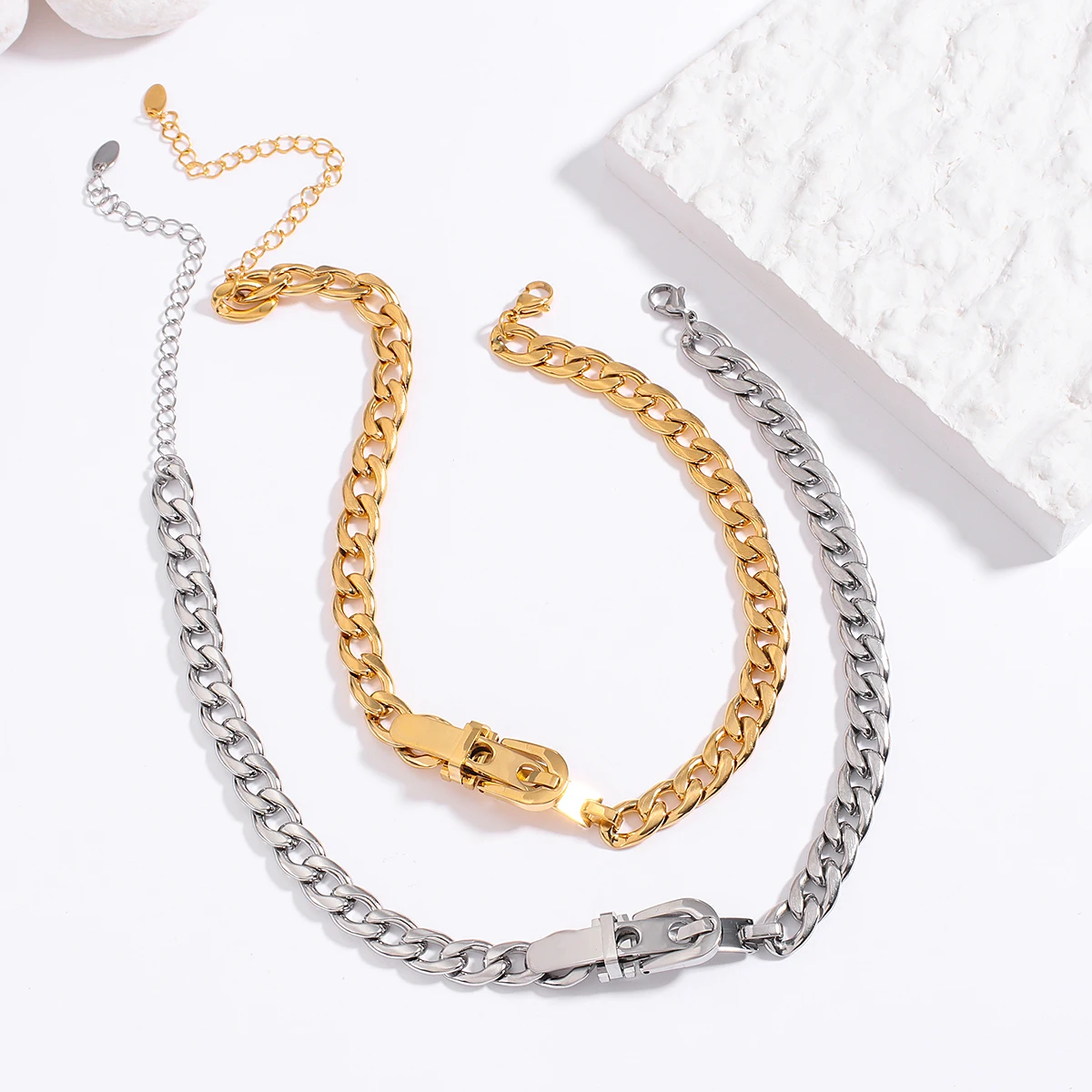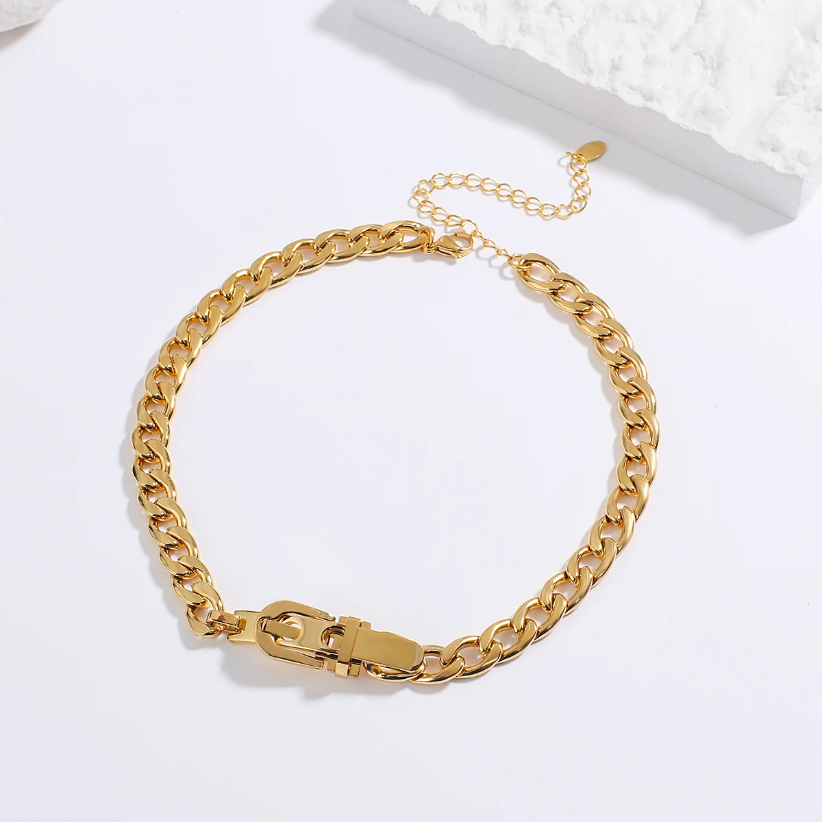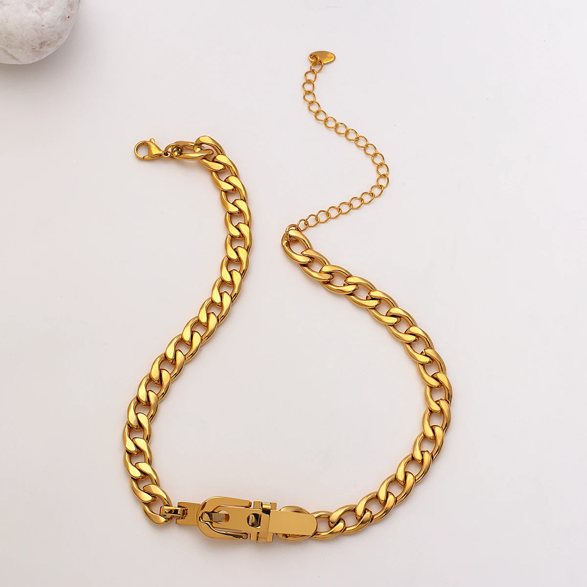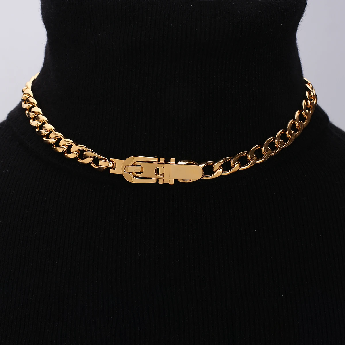 fleepmart Minimalist 18k Real Gold Plated Belt Buckle Stainless Steel Necklace for Women Men Hip Hop Simple Thick Chain Necklace
