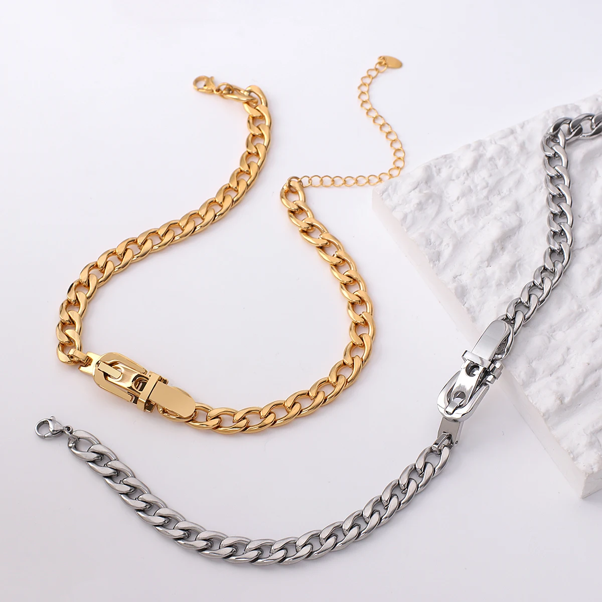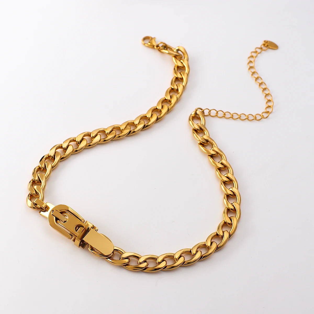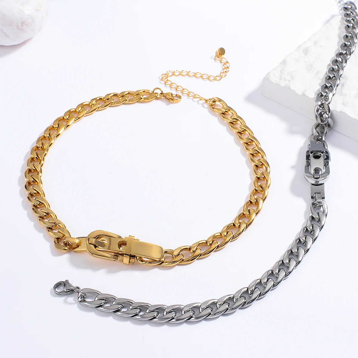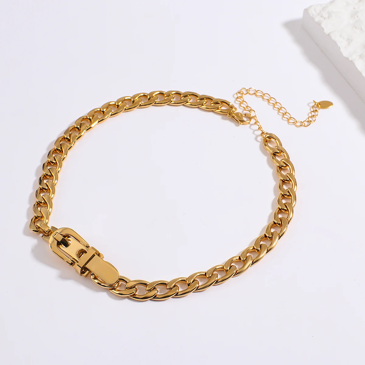 fleepmart Minimalist 18k Real Gold Plated Belt Buckle Stainless Steel Necklace for Women Men Hip Hop Simple Thick Chain Necklace