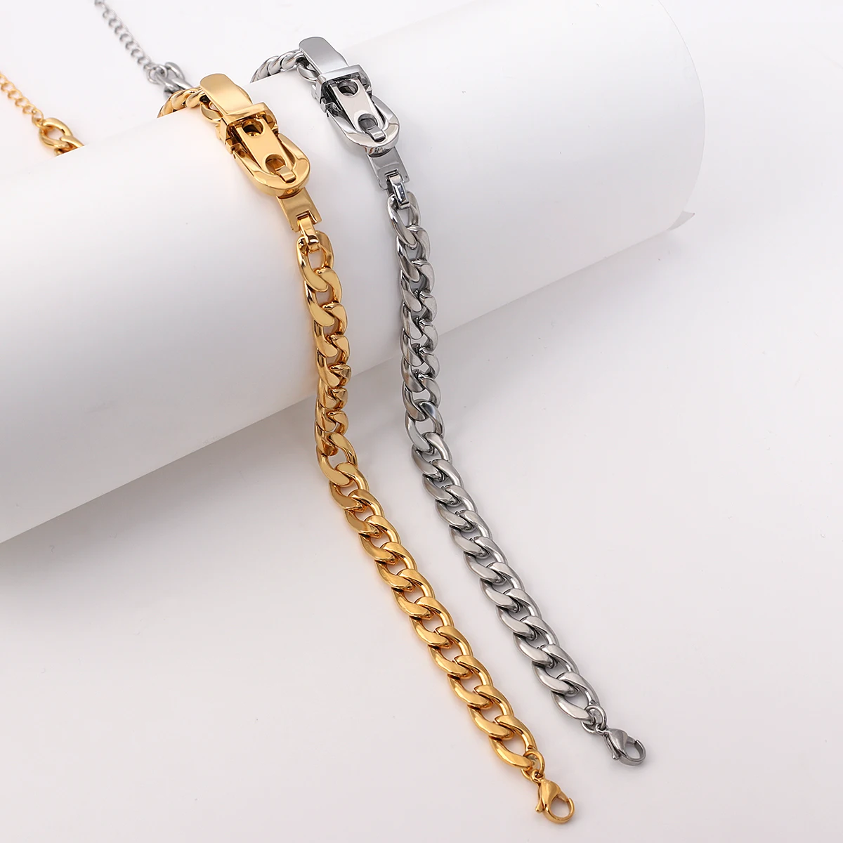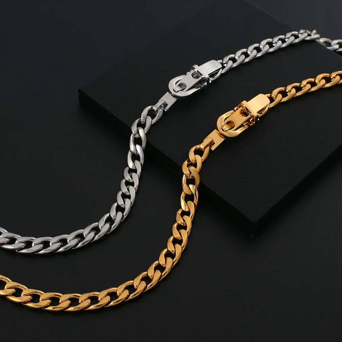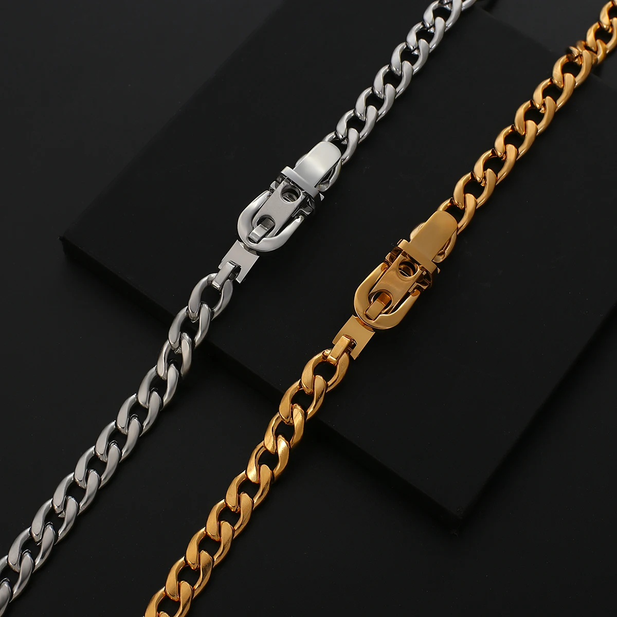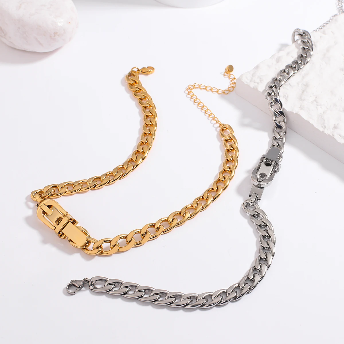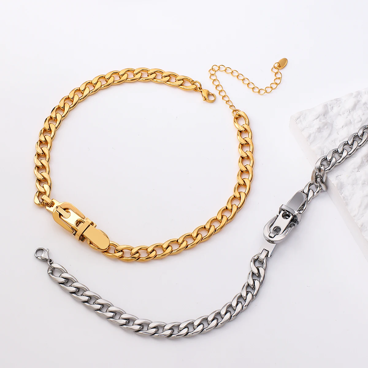 fleepmart Minimalist 18k Real Gold Plated Belt Buckle Stainless Steel Necklace for Women Men Hip Hop Simple Thick Chain Necklace