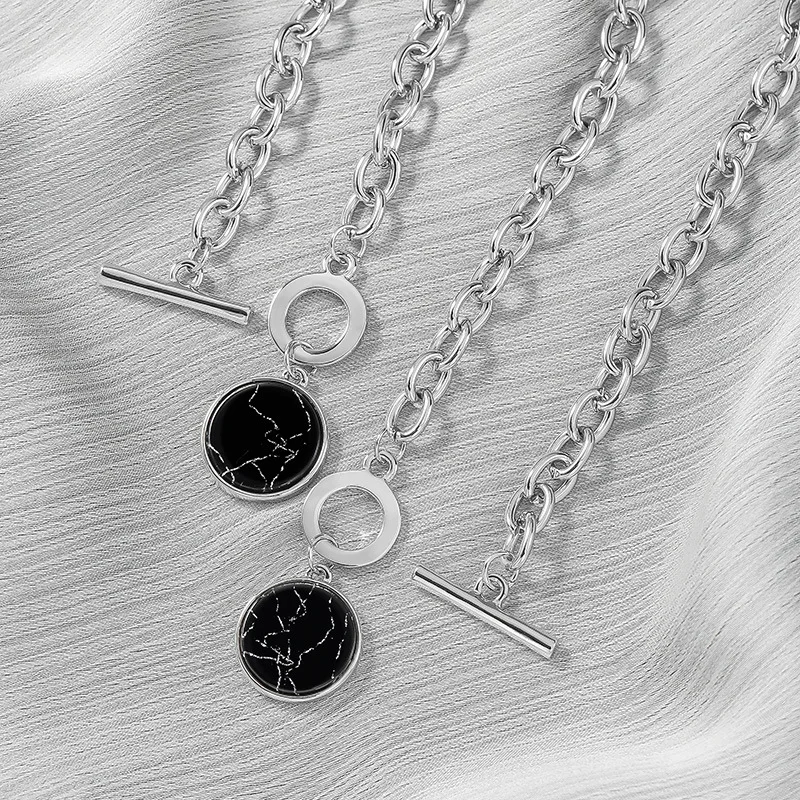 Fleepmart Minimalist Casual Neck Chain Necklaces for Women Round Marble Pendants Hiphop Female Fashion Jewelry Necklace Naszyjnik