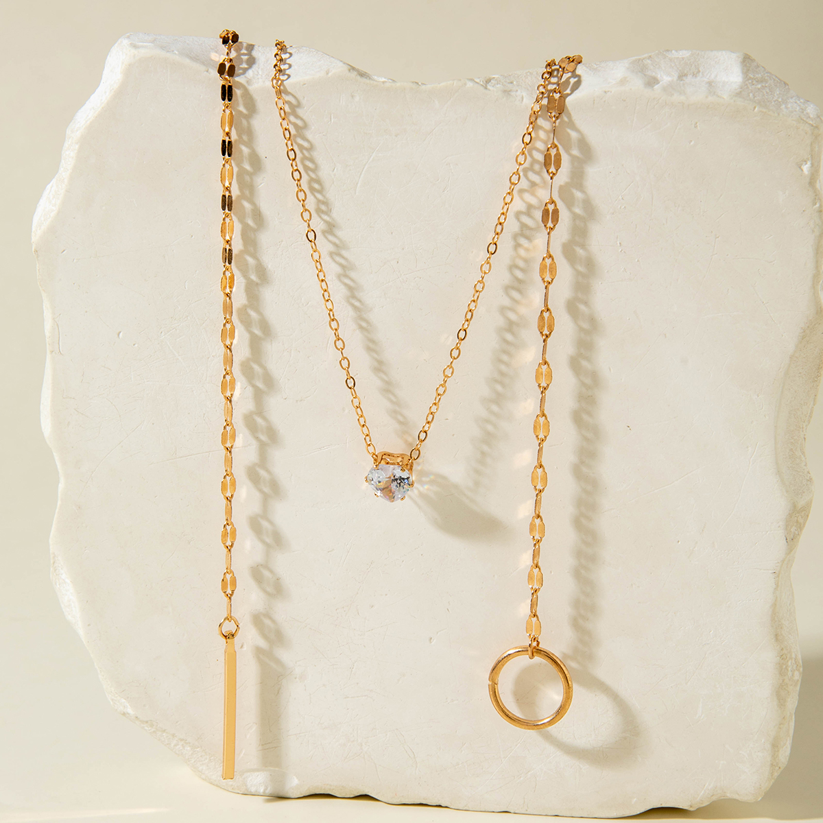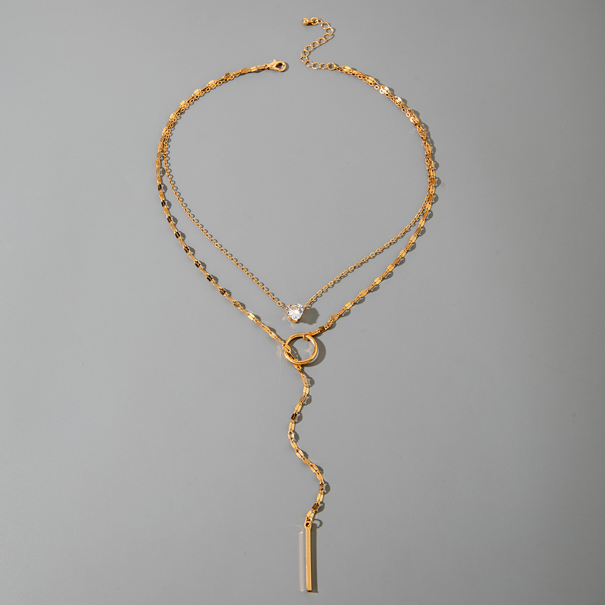 Fleepmart Minimalist Double layered Y-shaped Women Rhinestone Clavicle Necklace Popular Long Chain Pendant Necklace Holiday Gift