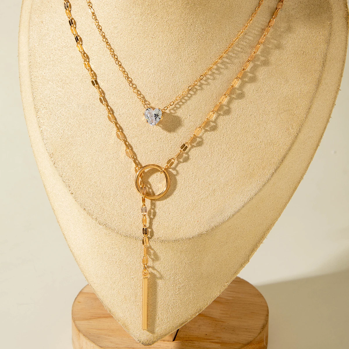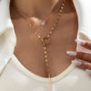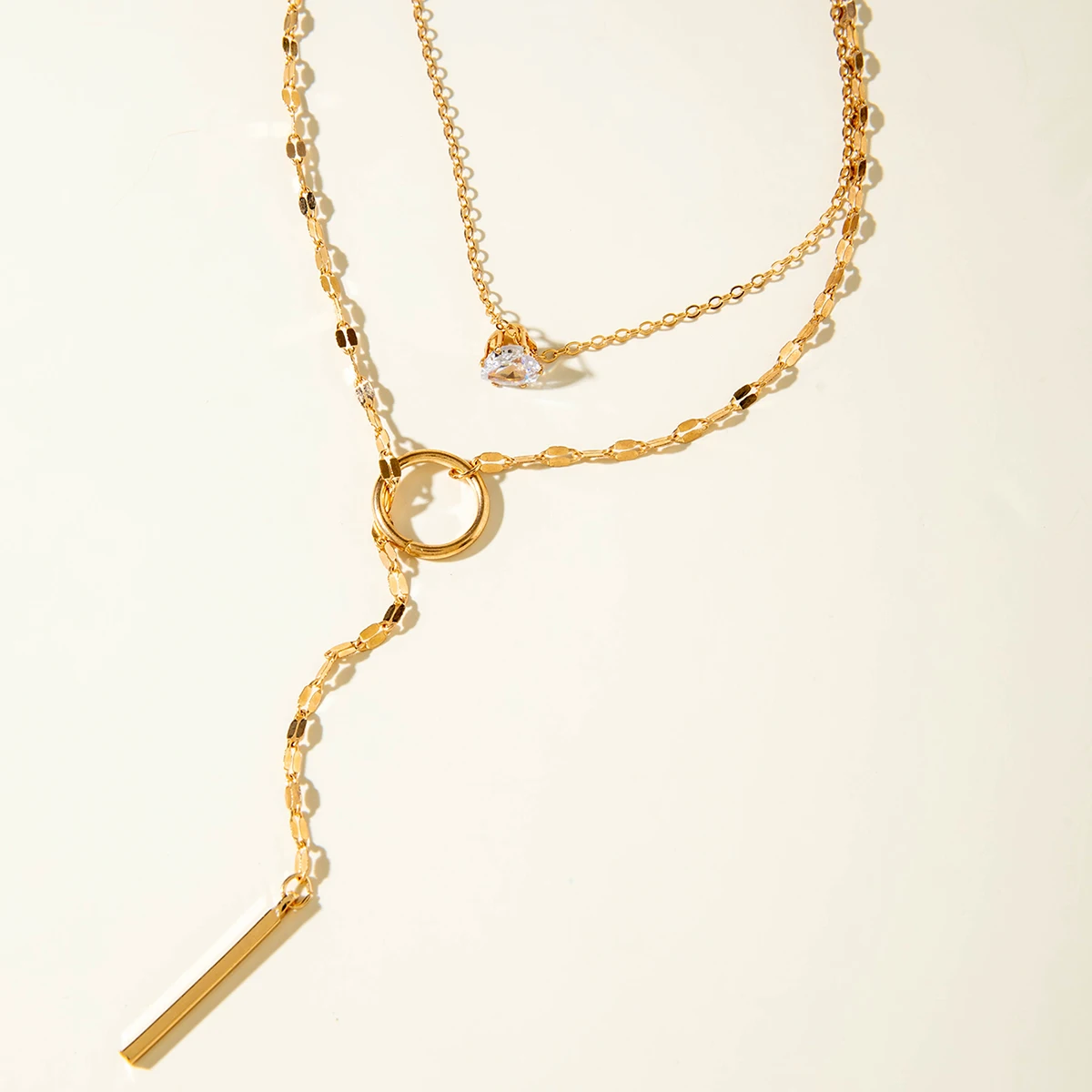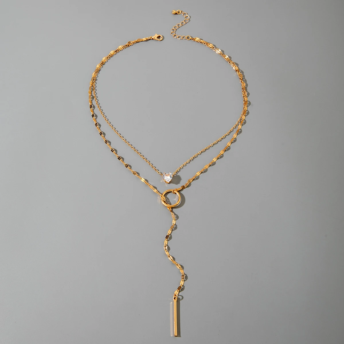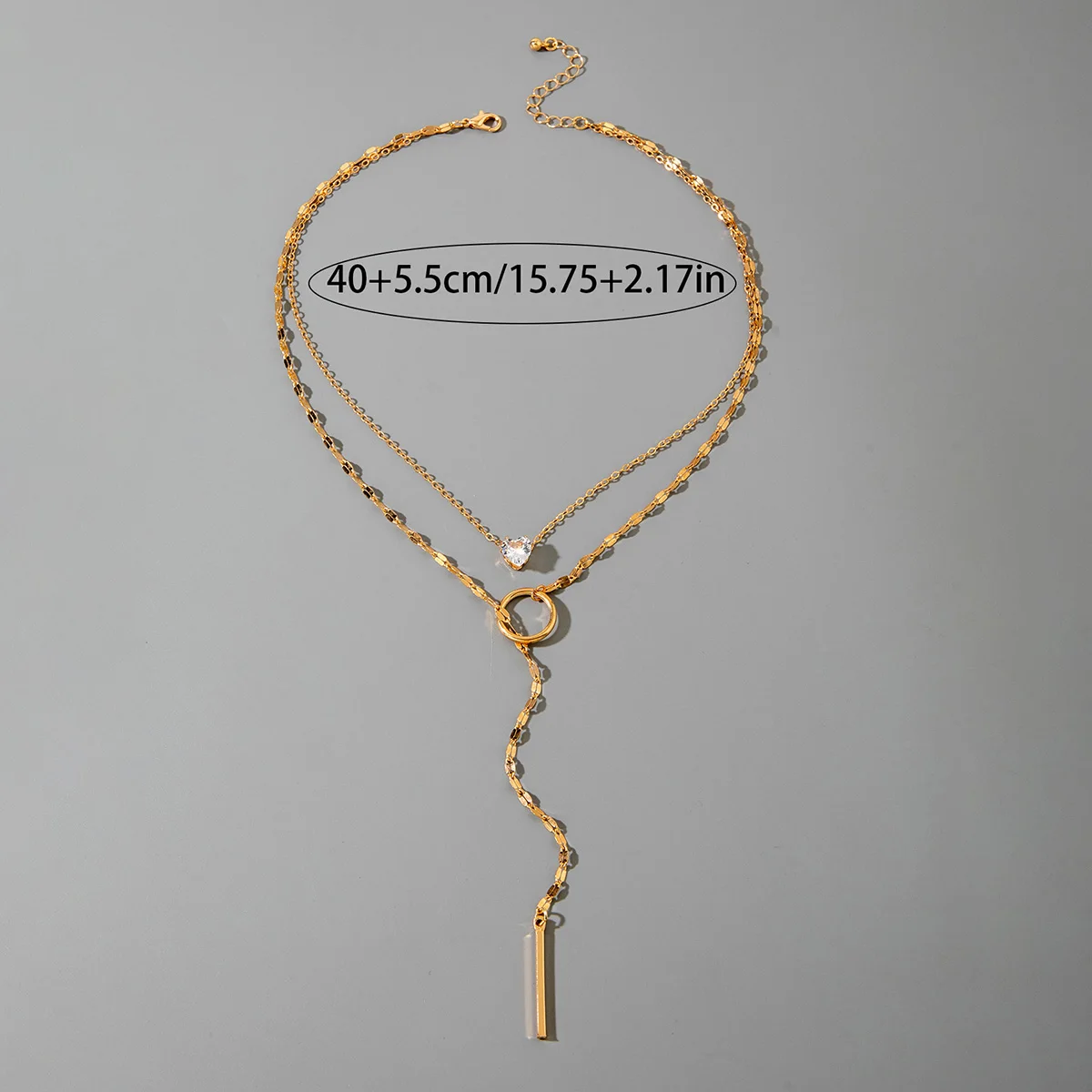 Fleepmart Minimalist Double layered Y-shaped Women Rhinestone Clavicle Necklace Popular Long Chain Pendant Necklace Holiday Gift