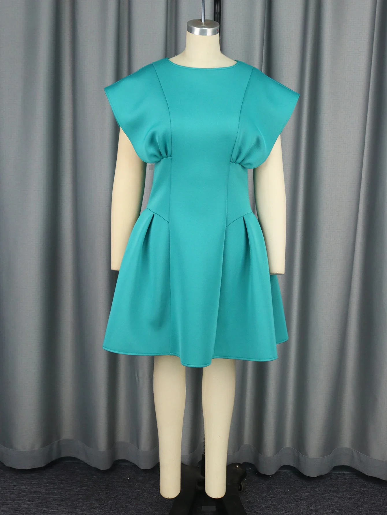 Fleepmart Modest Women Green Prom Party Dress O Neck Short Flying Sleeve Knee Length Formal Evening Birthday Event Gown Large Size Vestido