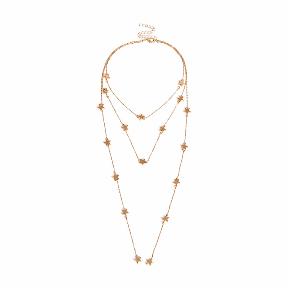 fleepmart Multi Layer Star Tassel Choker Necklace For Women Personality Statement Collares Gold-Color Sky Elements