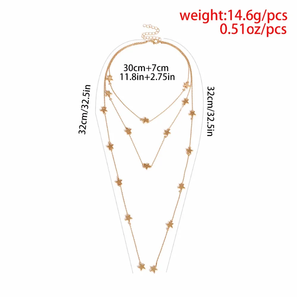 fleepmart Multi Layer Star Tassel Choker Necklace For Women Personality Statement Collares Gold-Color Sky Elements