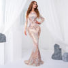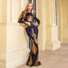 Fleepmart Multicolor Stretchy Sequin Party Dress Long Sleeve O Neck Bodycon Floor Length Full Lining Geometric Formal Gown