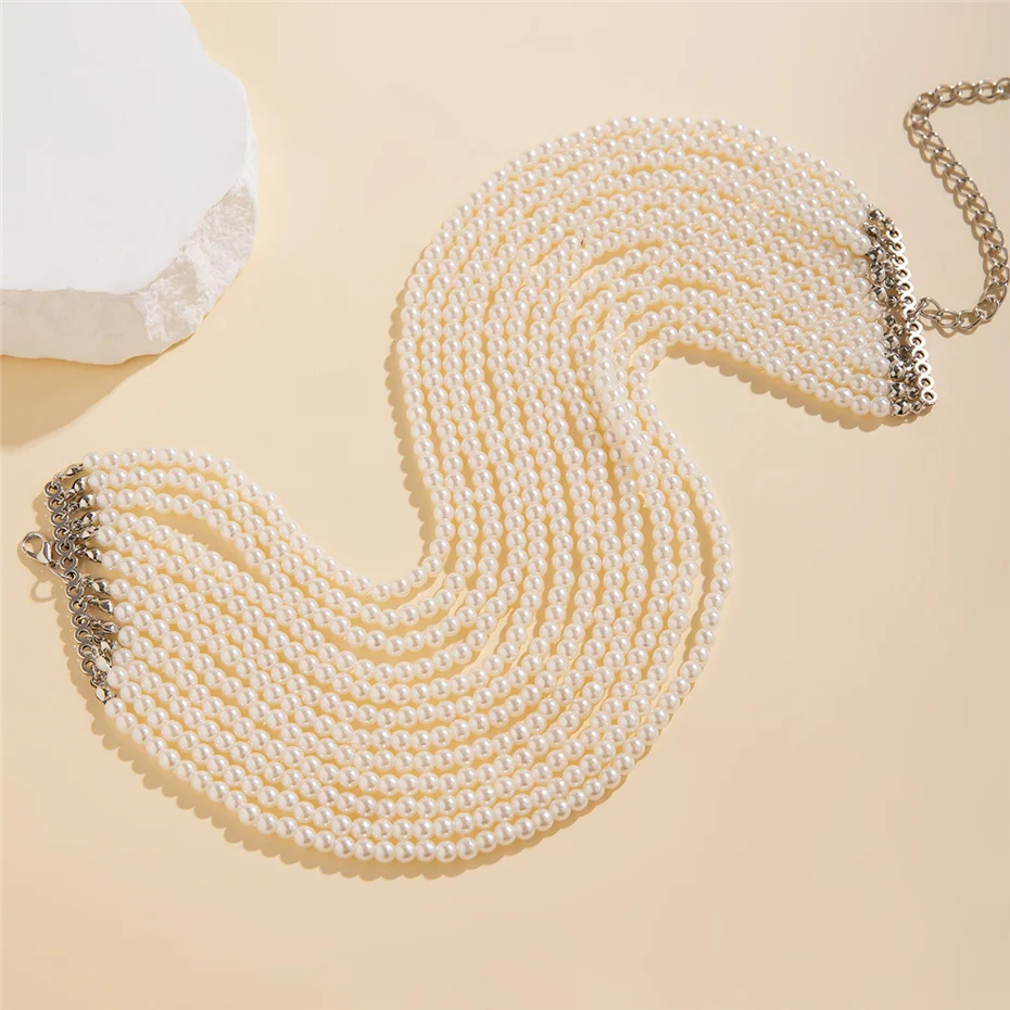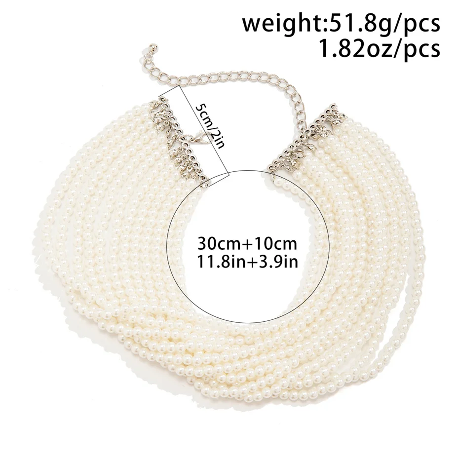 Fleepmart Multilayer Elegant Imitation Pearl Chunky Beads Chain Necklace for Women Wedding Bridal Goth Clavicle Choker Neck Accessories