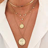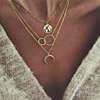 Fleepmart Multilayer Moon Map Pendant Necklace For Women Gold Color Round Circle Letter Chain Choker Necklaces Jewelry Party Gift New