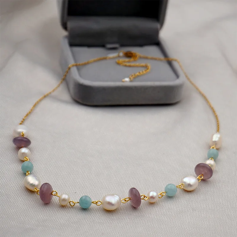 Fleepmart Natural Real Baroque Pearl Choker Necklace Women Wedding Jewelry Nature Stone Sweet Boho