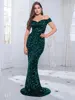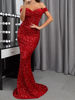 Fleepmart Neck Sequined Long Party Maxi Dress Off the Shoulder Stretch Sleeveless Floor Length Evening Gown Red Black Green