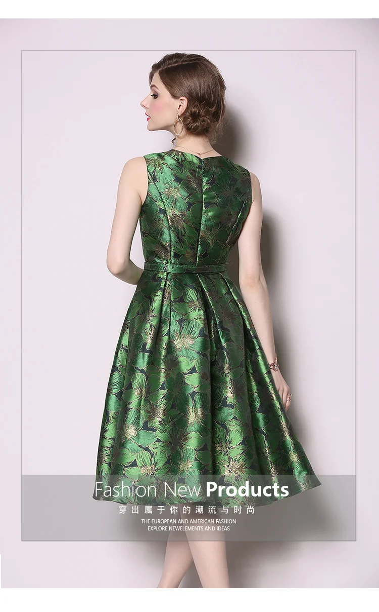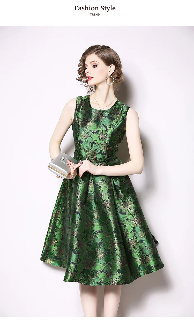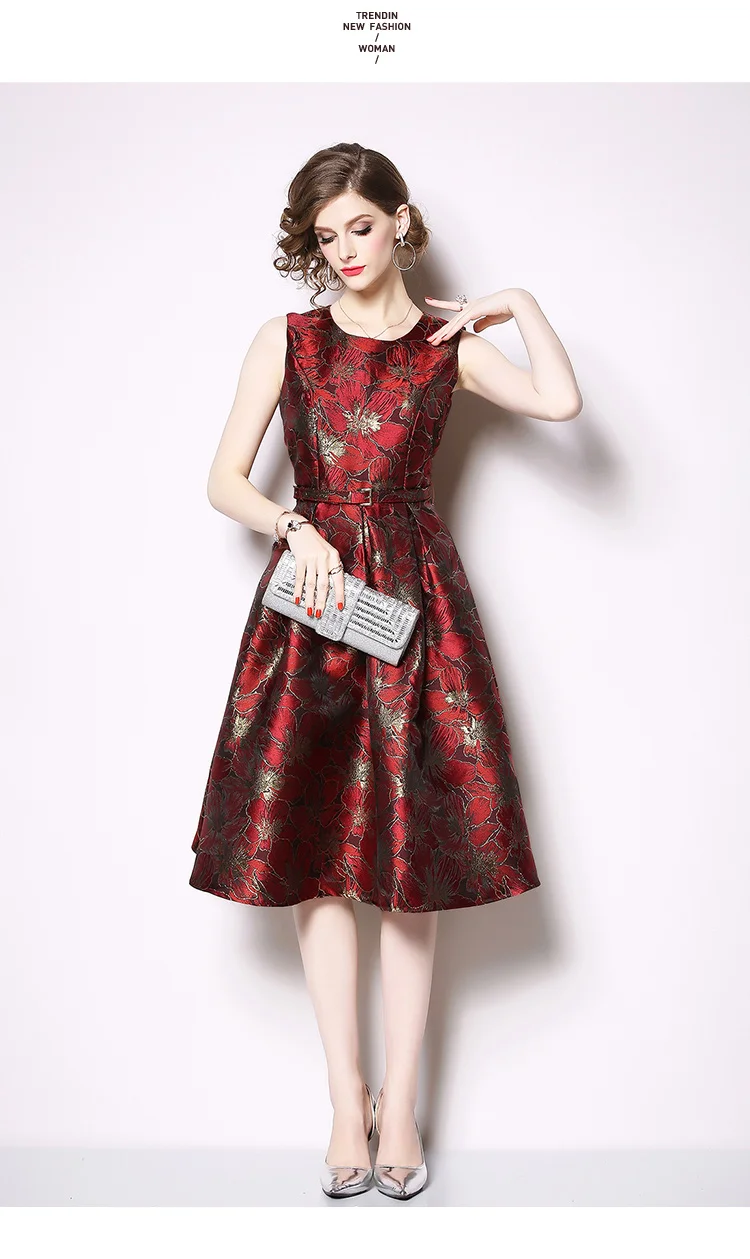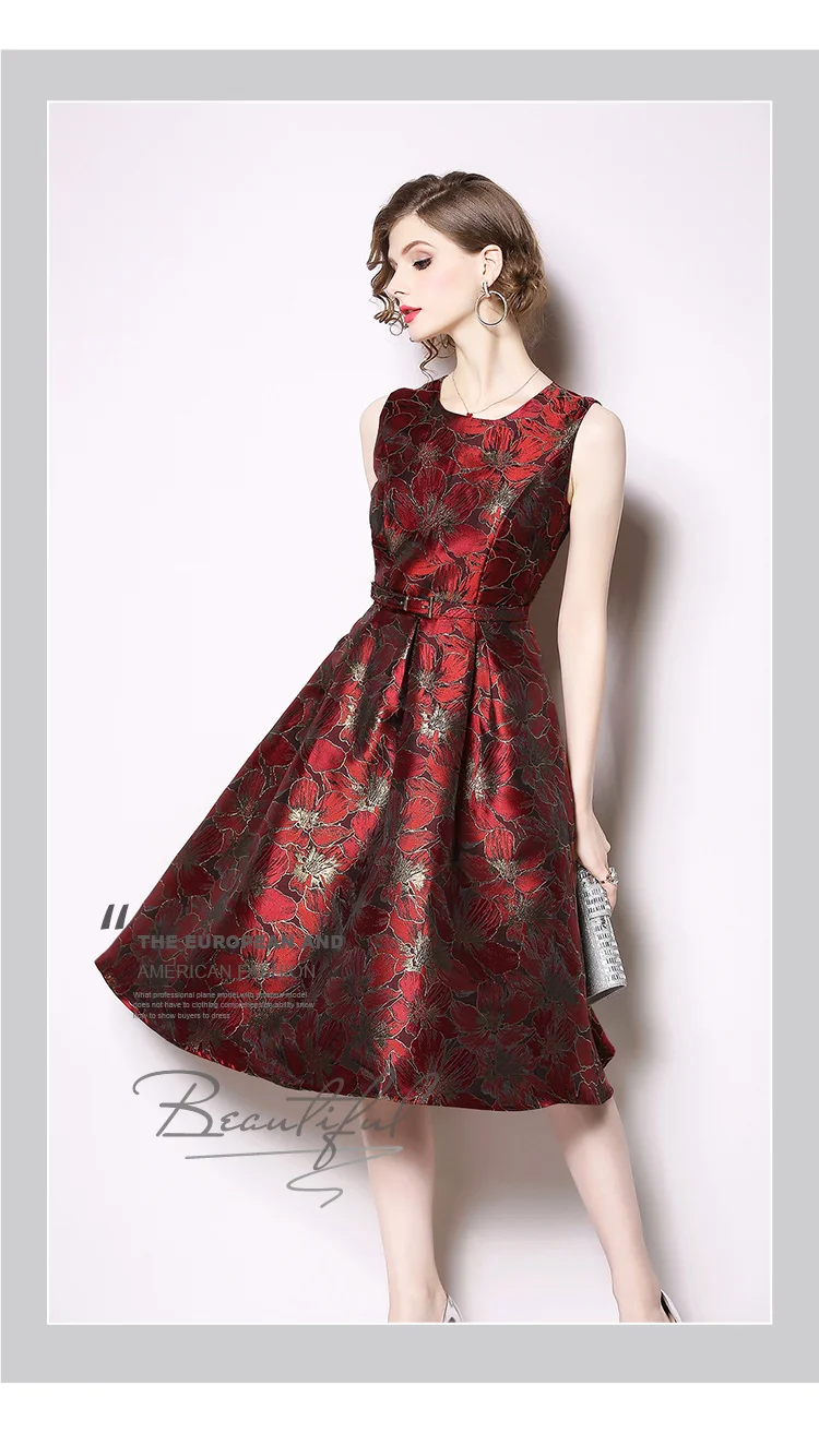 Fleepmart New 2022 Spring Women Vintage Jacquard Office Work Dress Sleeveless Tank Ball Gown Party Dresses Plus Size S-3XL