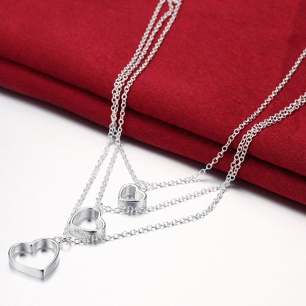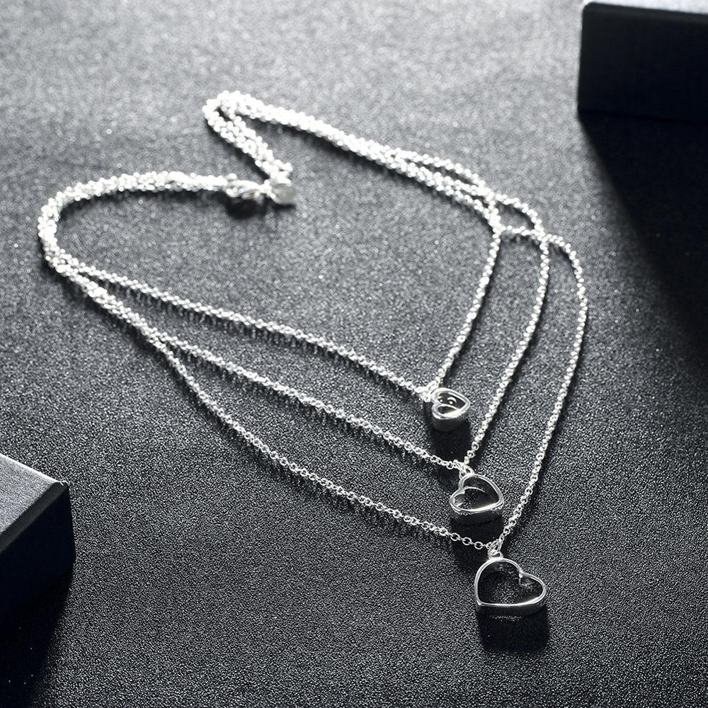 Fleepmart New 925 Silver Necklace Heart Pendant Multilayer Necklace For Woman Jewelry Wedding Gift