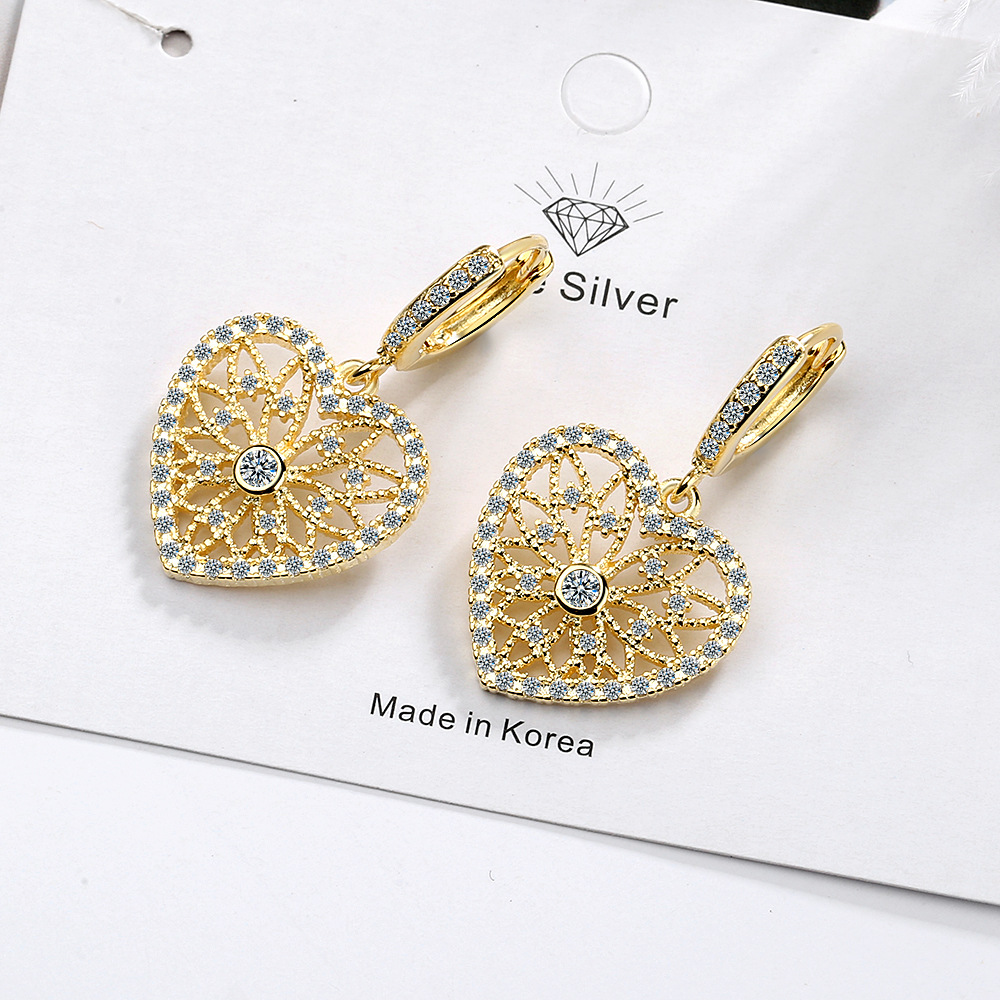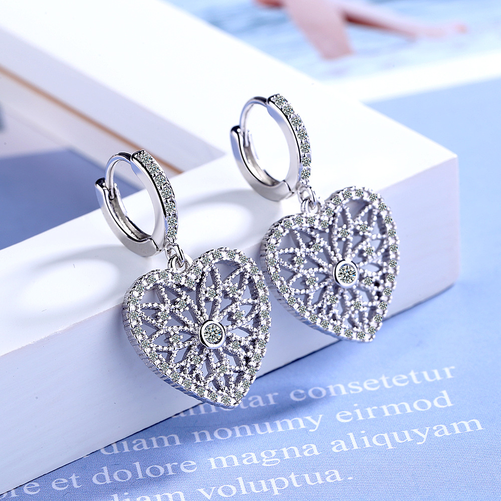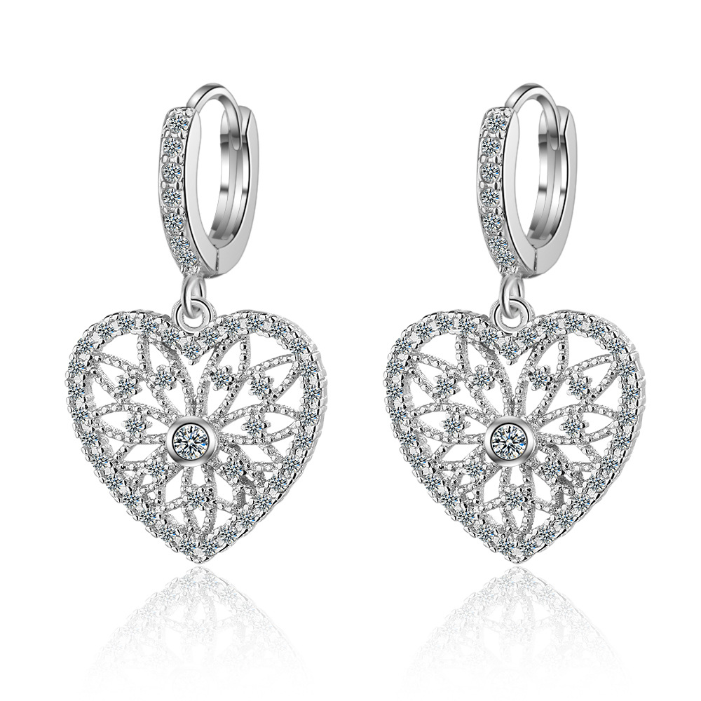 Fleepmart New 925 Sterling Silver Earrings Hollow Heart Zircon Crystal Earrings For Girls Glamour Jewelry Gifts