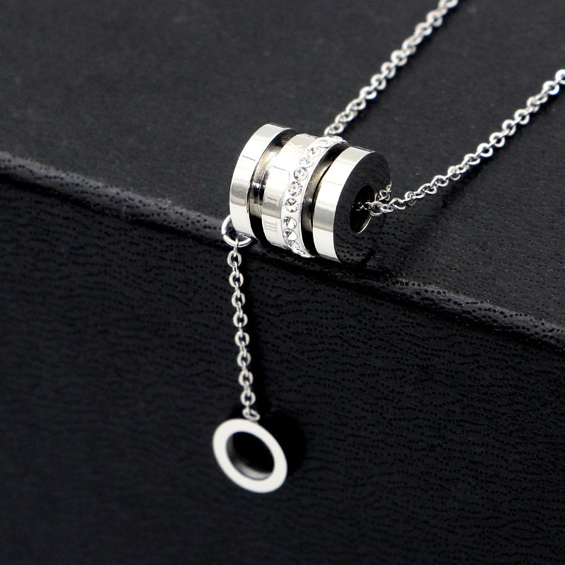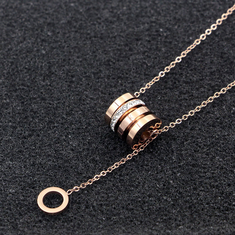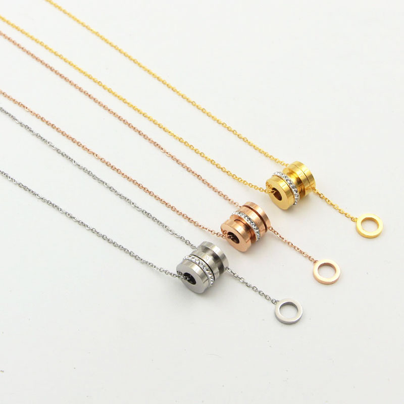 Fleepmart New Arrival Movable Zircon And Roman Numeral Circle Pendant Necklace Hang Small Circle Titanium Steel Necklace Gift For Woman