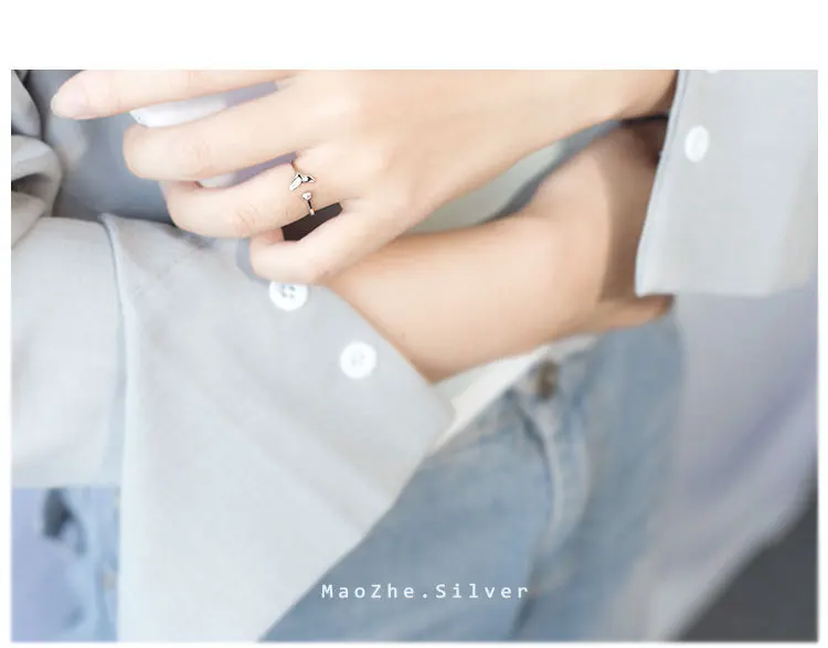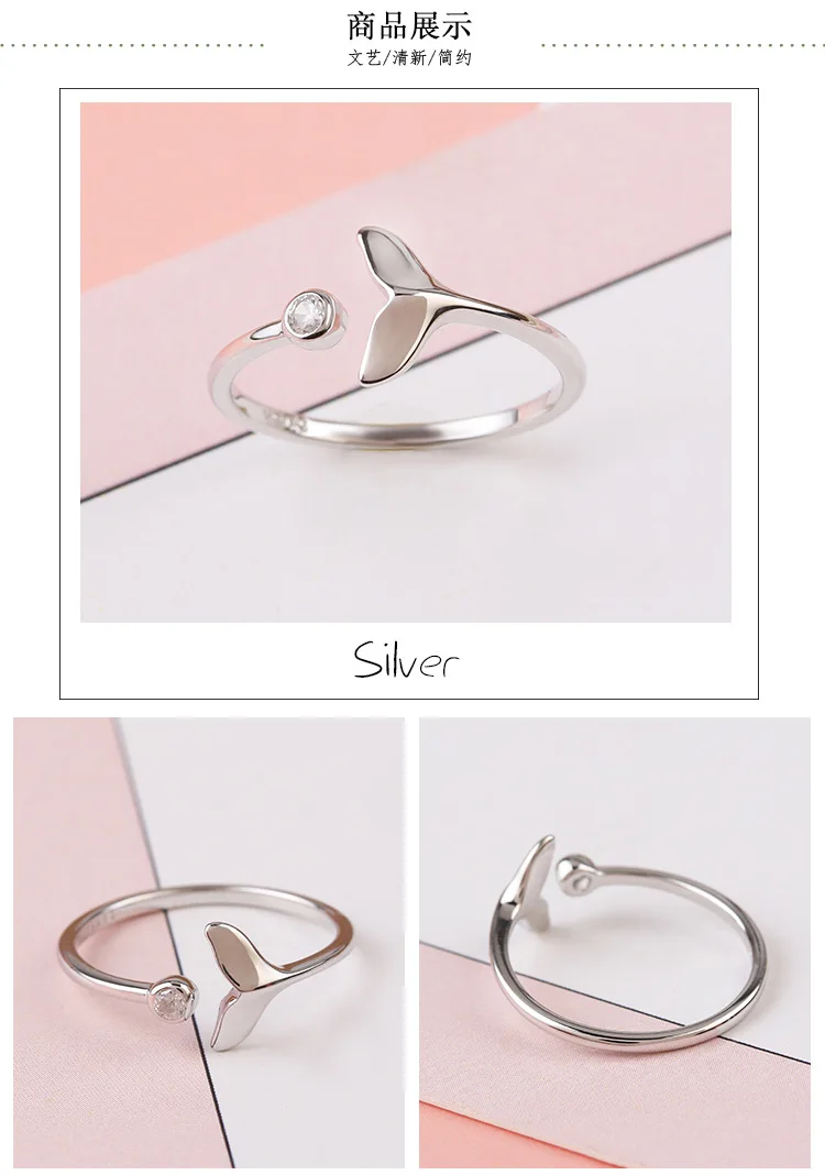 Fleepmart New Arrival Personality Beautiful 925 Sterling Silver Jewelry Fishtail Fish Wave Crystal Opening Rings