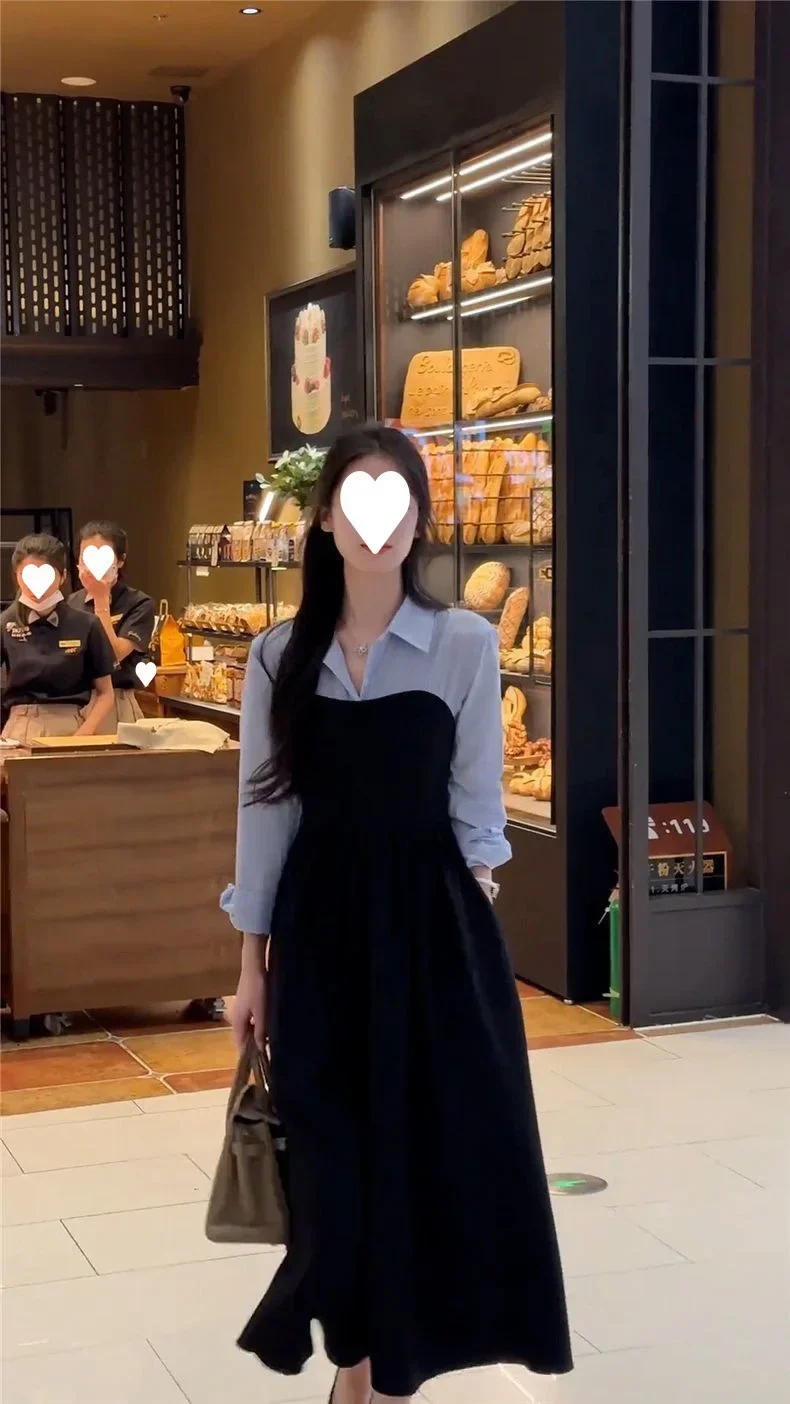 Fleepmart New Arrival Women’s Fashion Two-piece Illusionshirt Black Long Sleeve Dress High-end Feel Matching Set