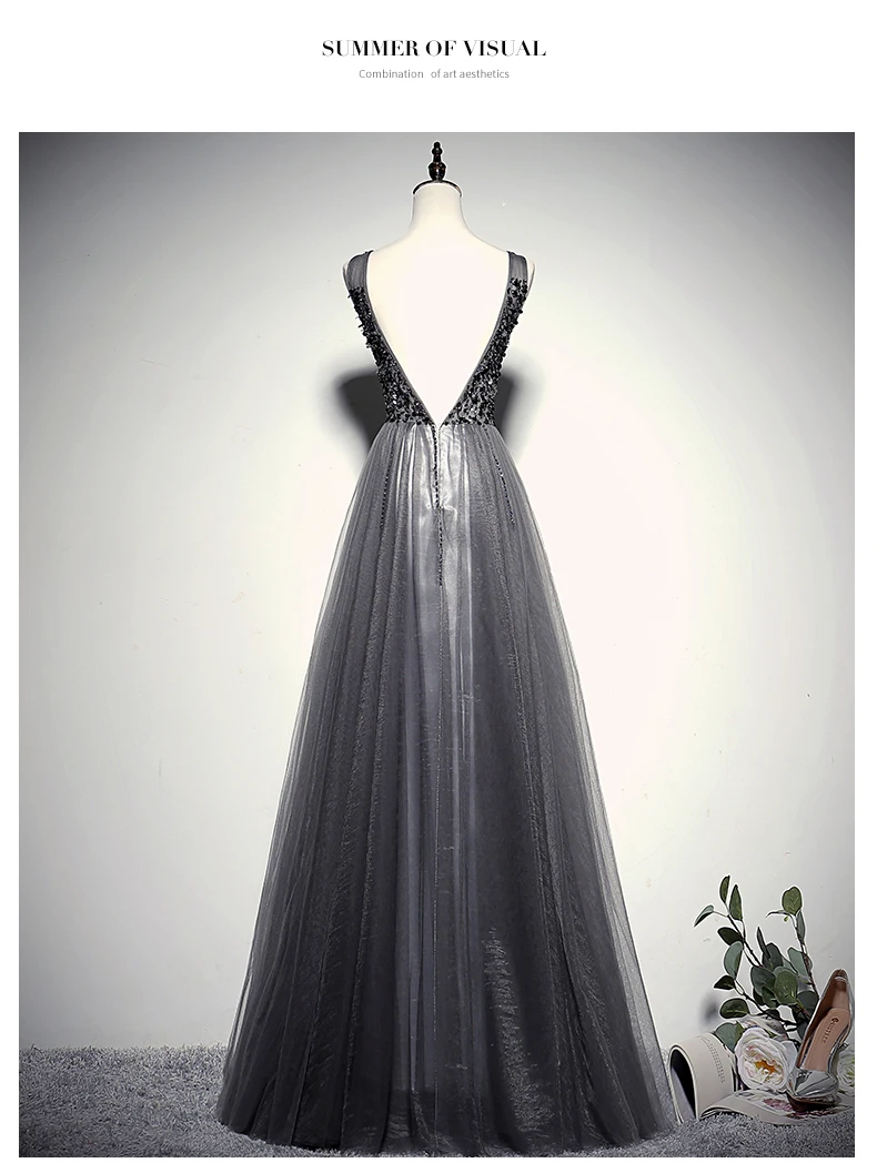 Fleepmart New Arrived Beading Evening Dresses Sexy Prom Gowns With Backless Party Elegant Long A Line Formal Robe De Soiree
