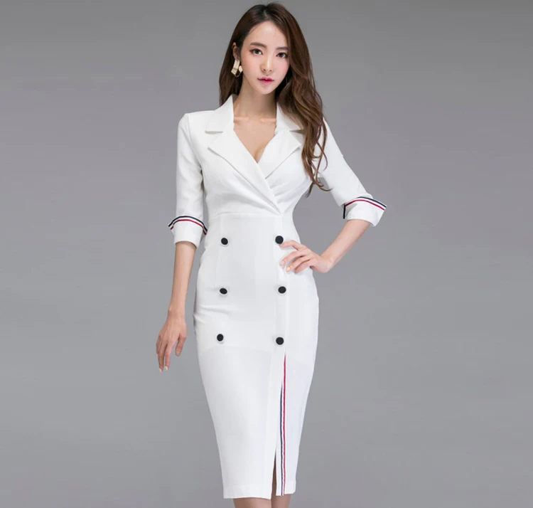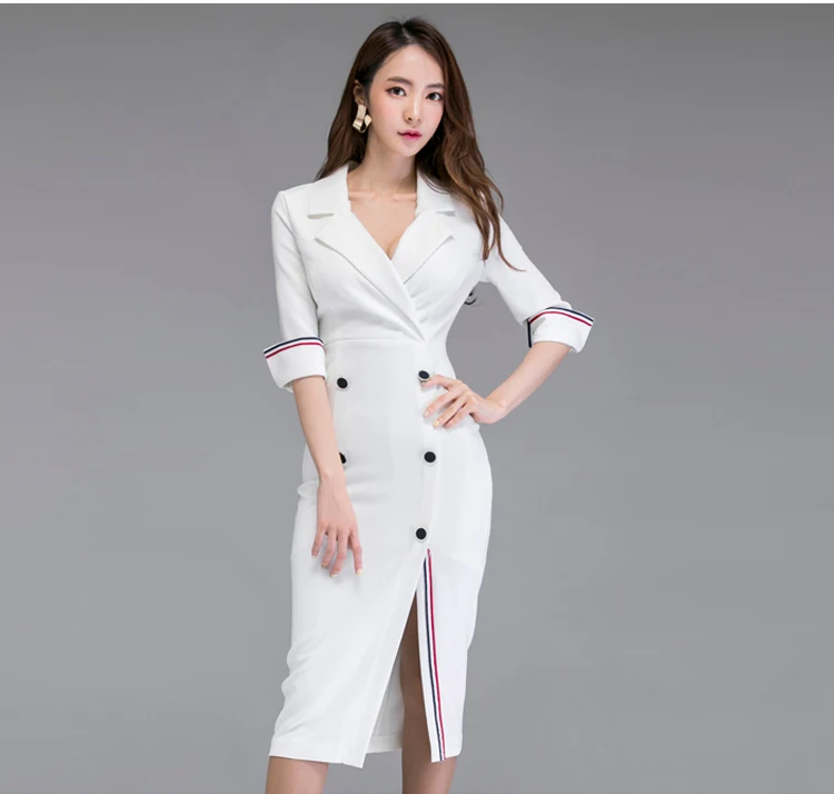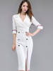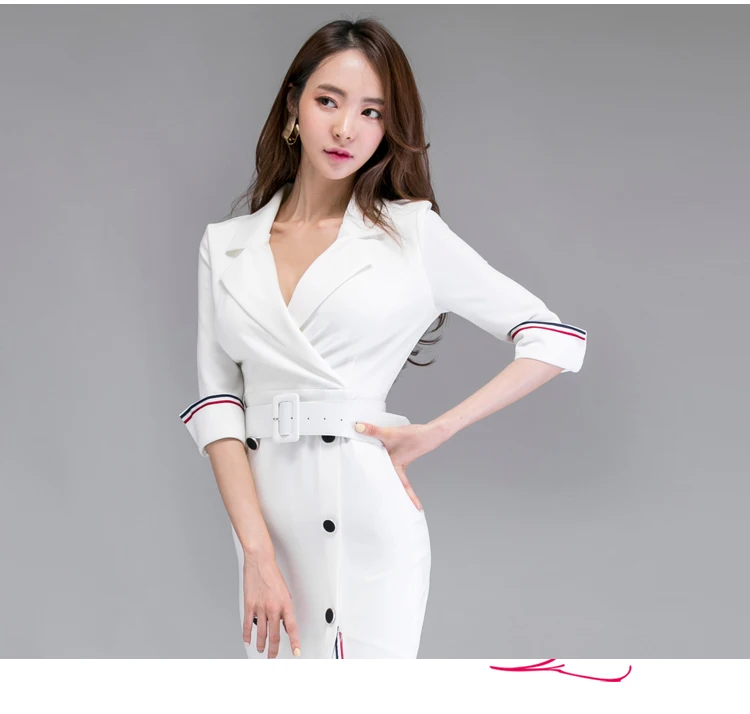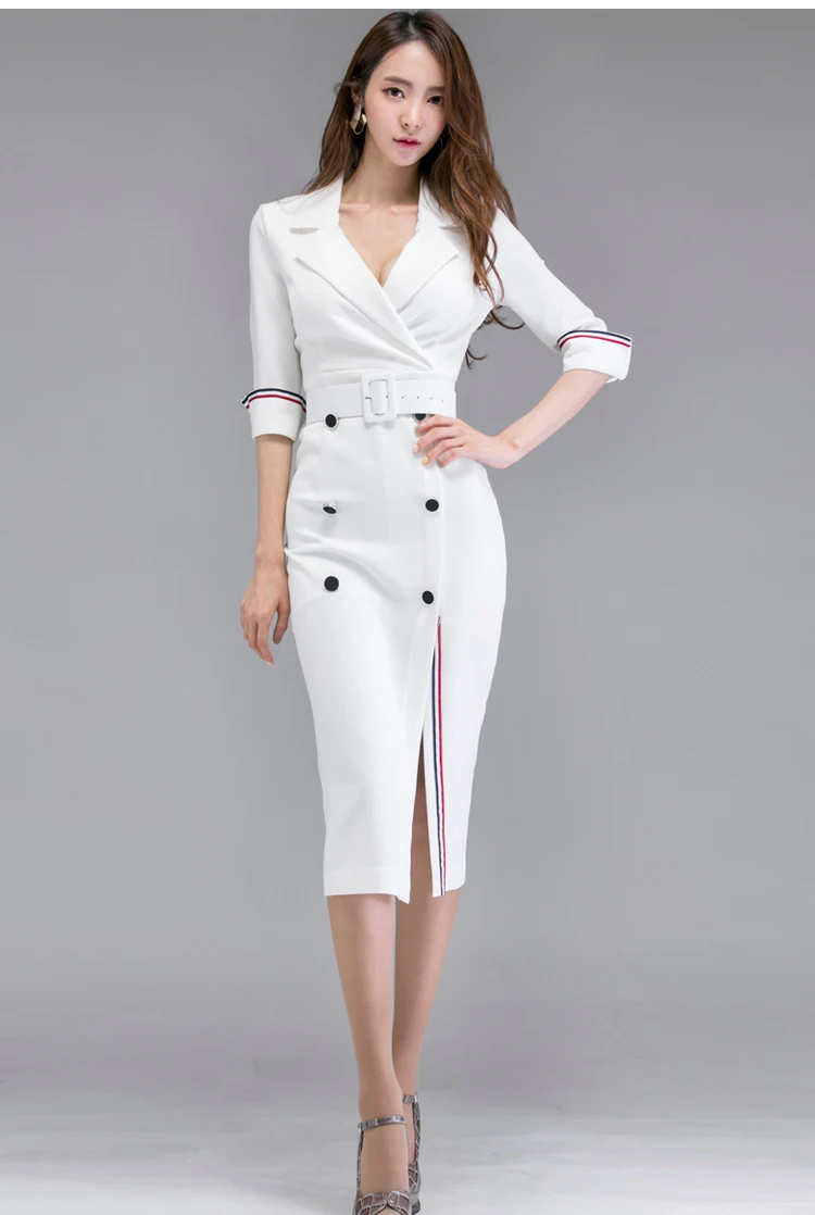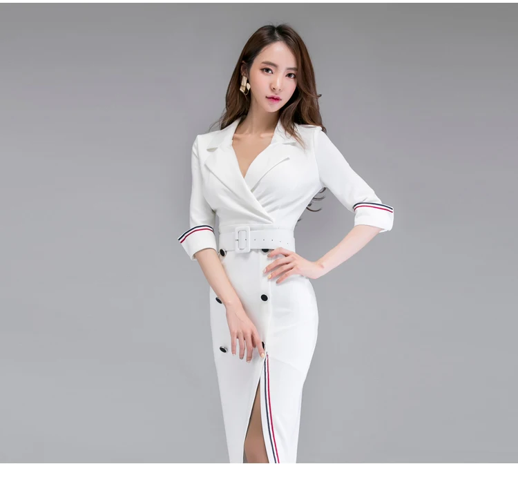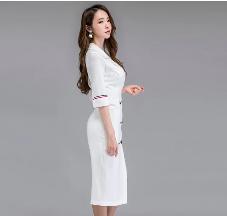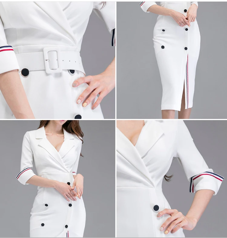 Fleepmart New Autumn Winter Formal Dress Elegant White Half Sleeve Slim Office Lady Work Dress