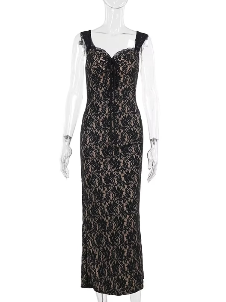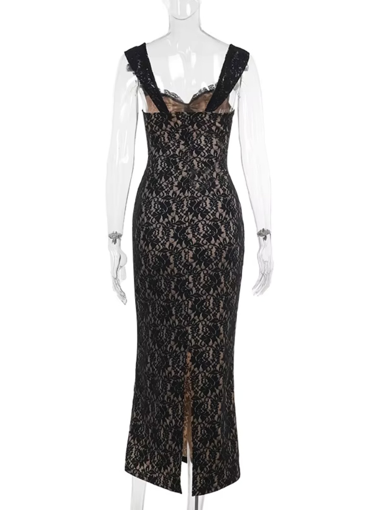 Fleepmart New Black Lace Sexy Package Hip Women Slim Fit Elegant Long Gown Spring Casual Party Robe