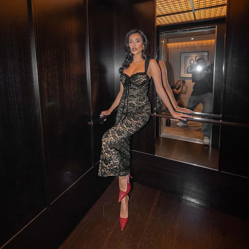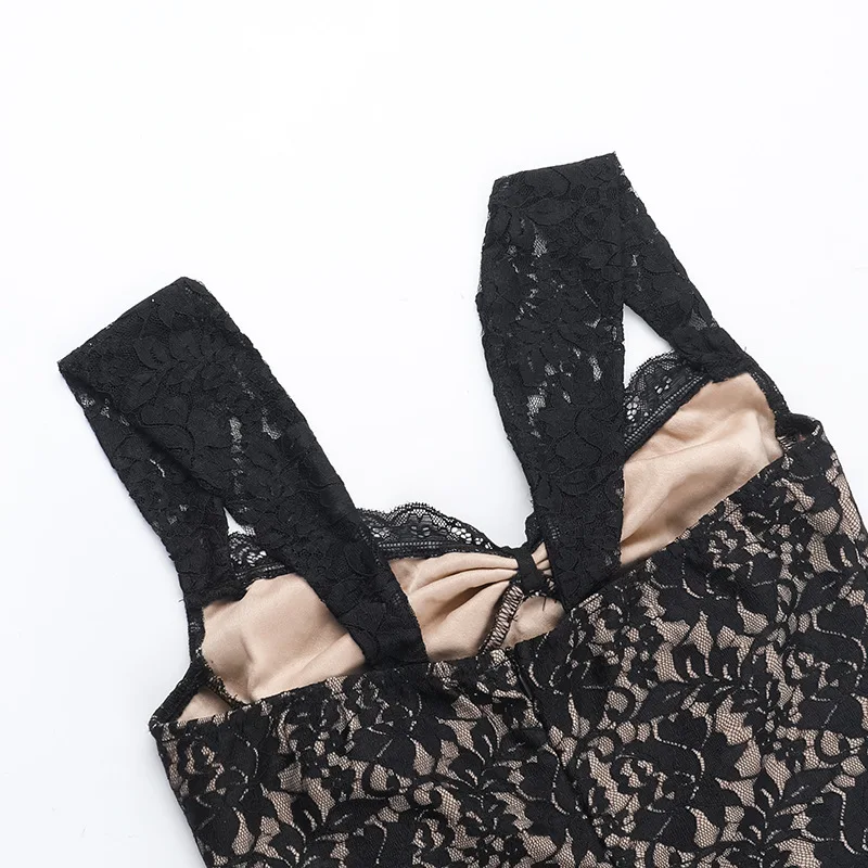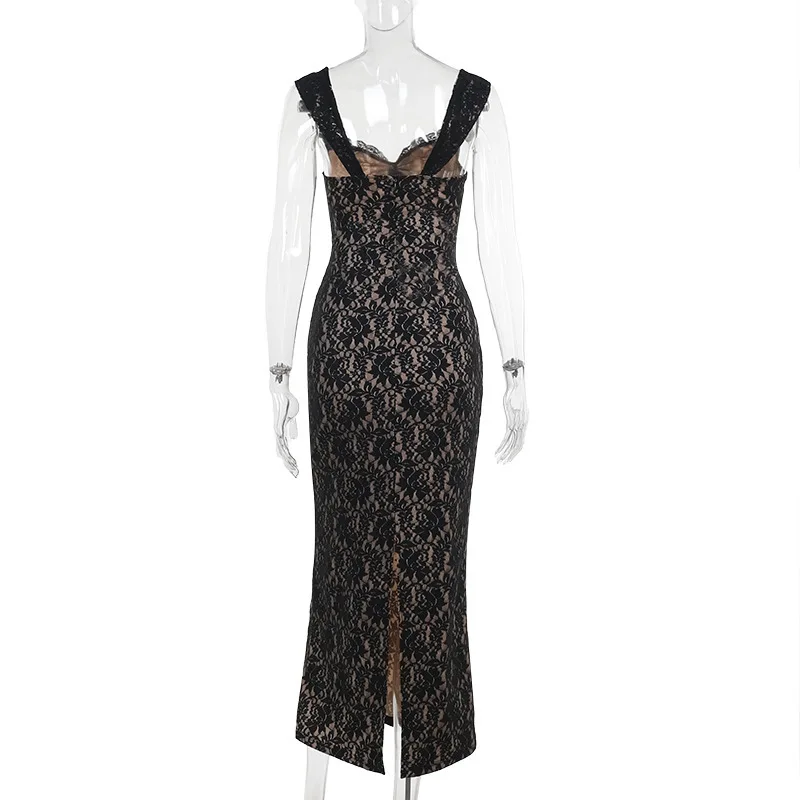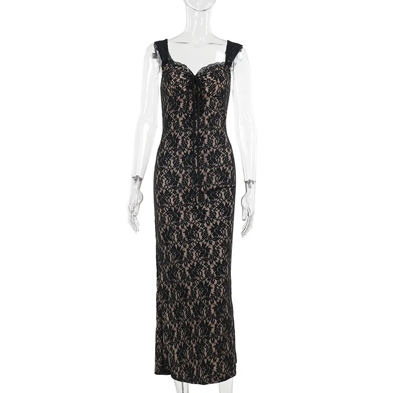 Fleepmart New Black Lace Sexy Package Hip Women Slim Fit Elegant Long Gown Spring Casual Party Robe