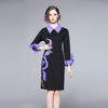 Fleepmart New Brand Designer Women Vintage Flower Embroidery Dresses Turn Down Collar Butterfly Sleeve Bodycon Pencil Party Dress