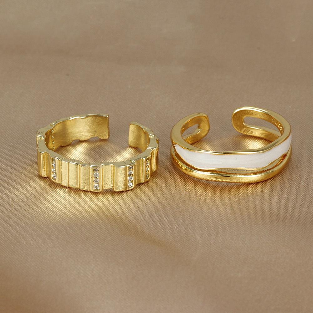 Fleepmart New Design Double Metal Enamel Open Rings Stainless Steel Gold Color Adjustable Ring Korean Fashion Jewelry For Women