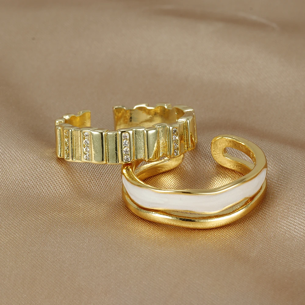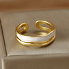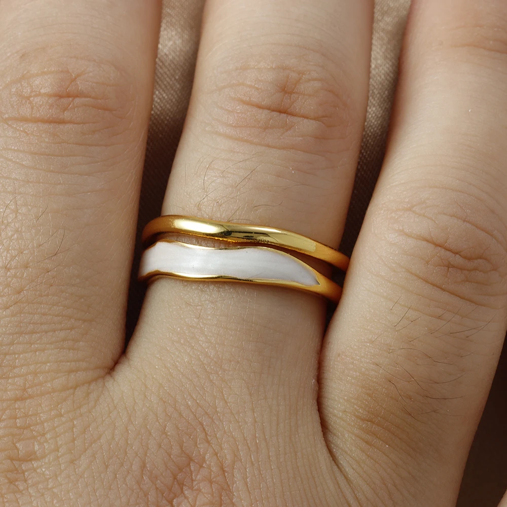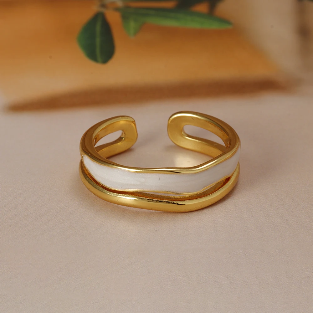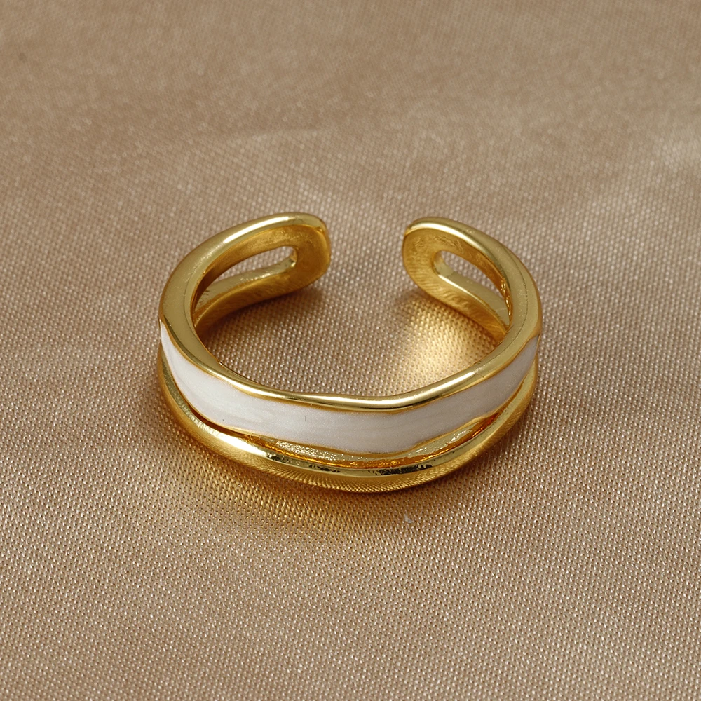 Fleepmart New Design Double Metal Enamel Open Rings Stainless Steel Gold Color Adjustable Ring Korean Fashion Jewelry For Women