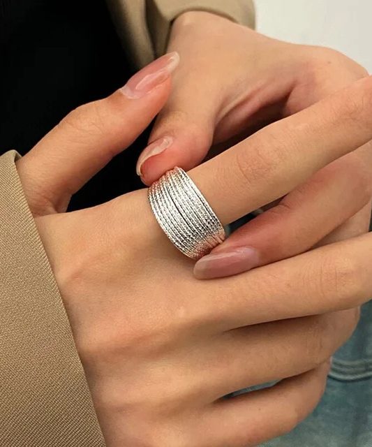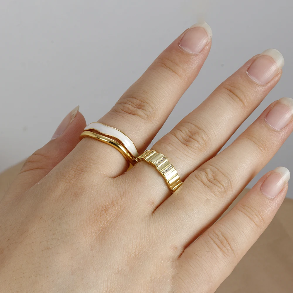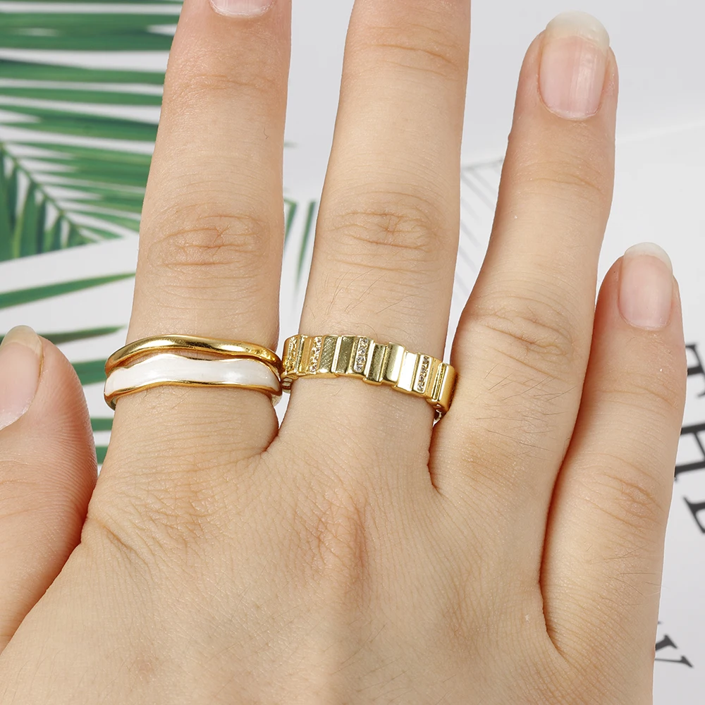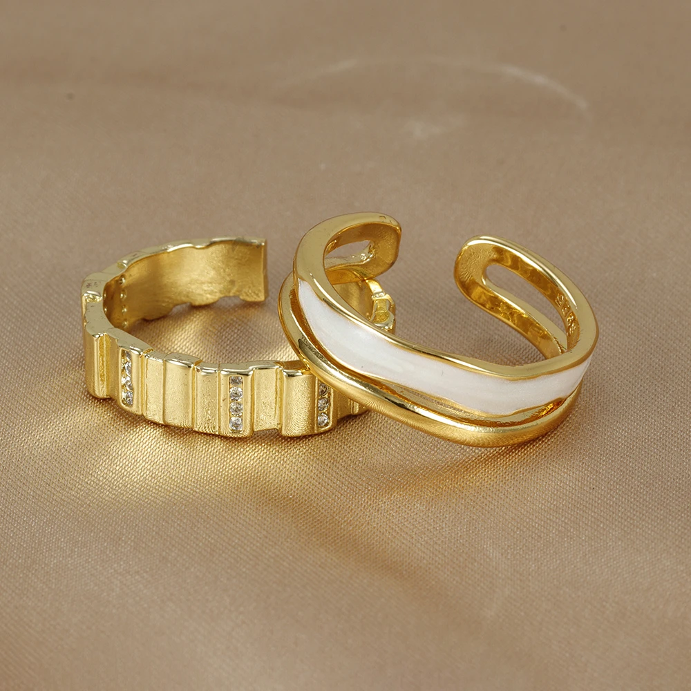 Fleepmart New Design Double Metal Enamel Open Rings Stainless Steel Gold Color Adjustable Ring Korean Fashion Jewelry For Women
