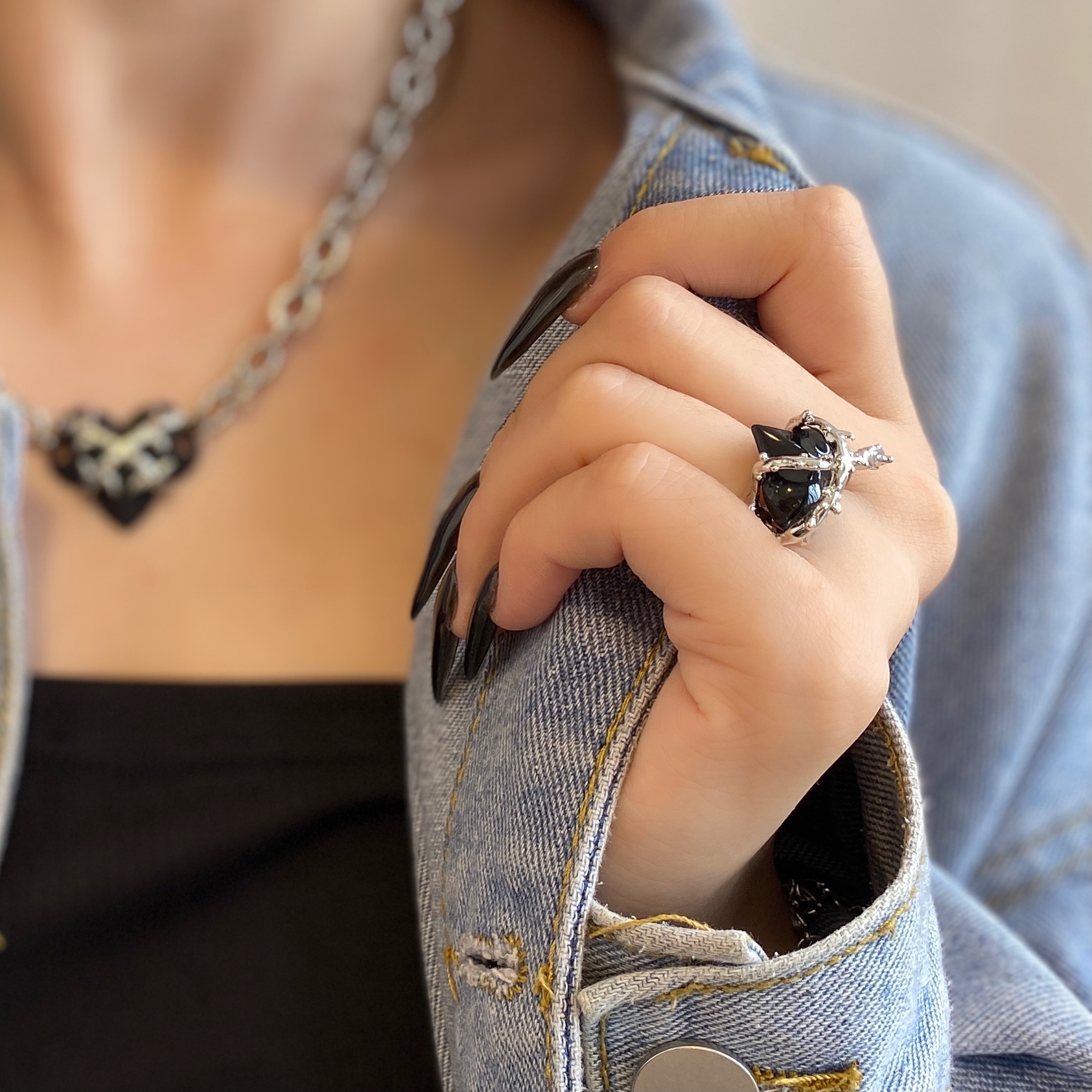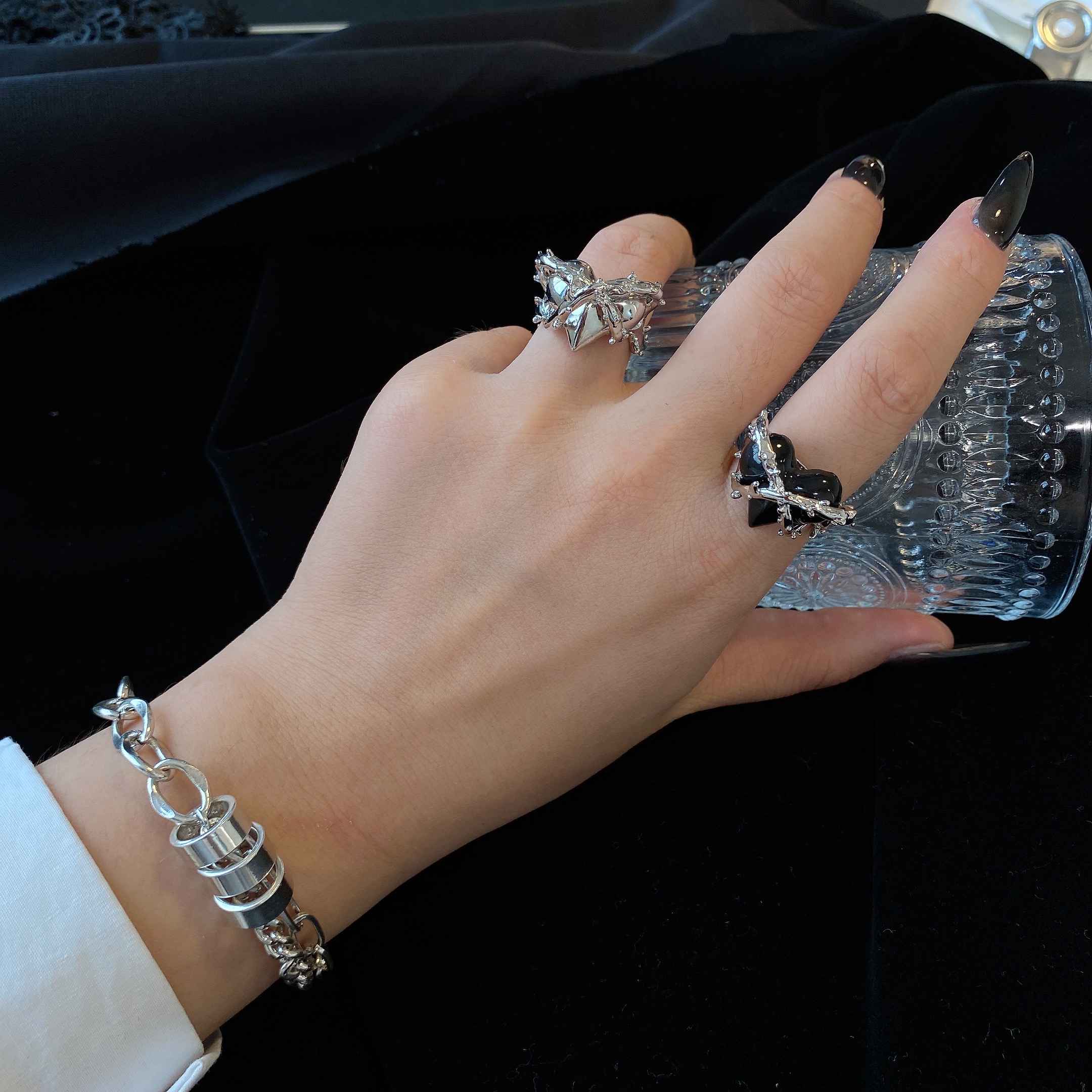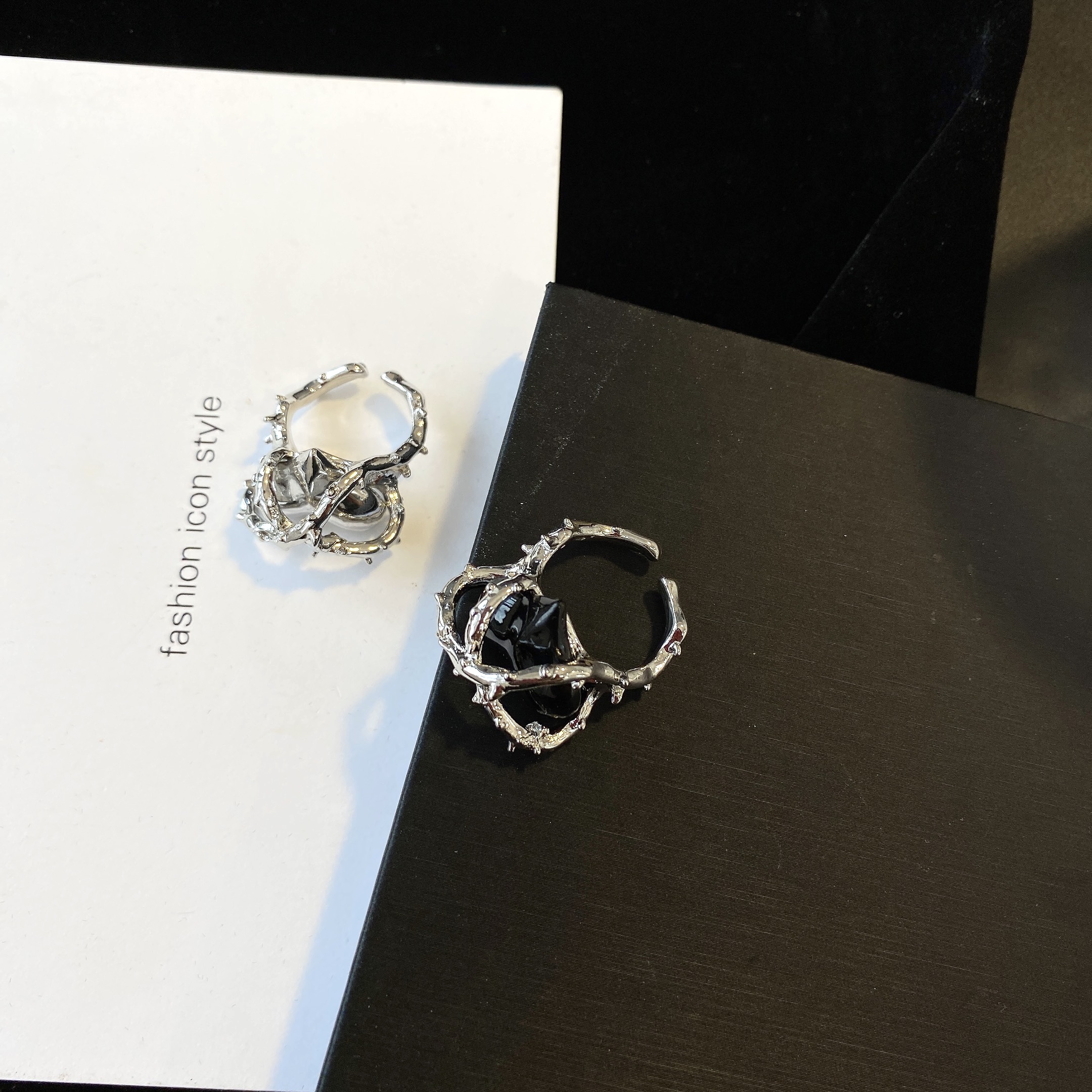 Fleepmart New Design Punk Gothic Thorns Black Silver Color Heart Metal Opened Rings For Women Girls Party Adjustable Jewelry
