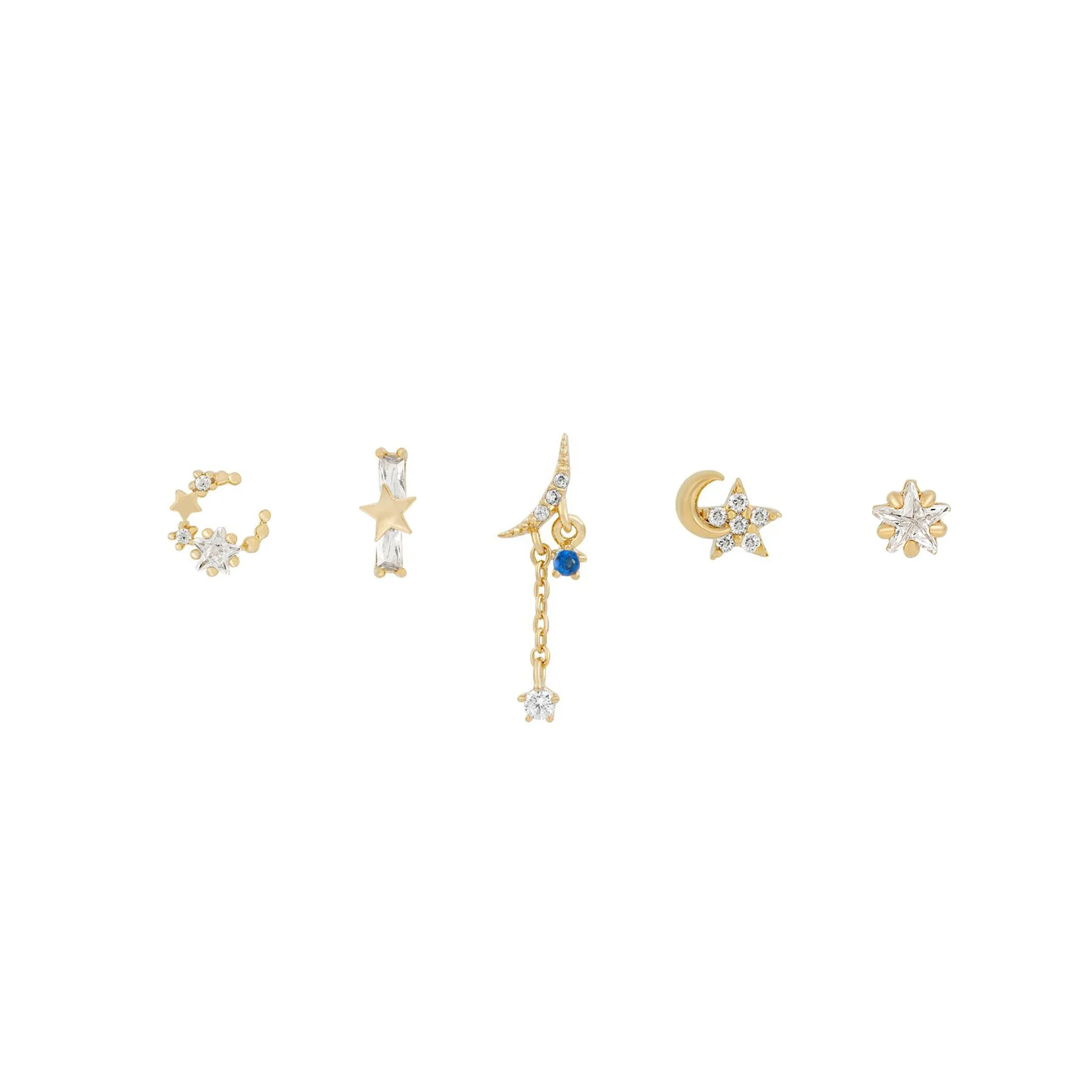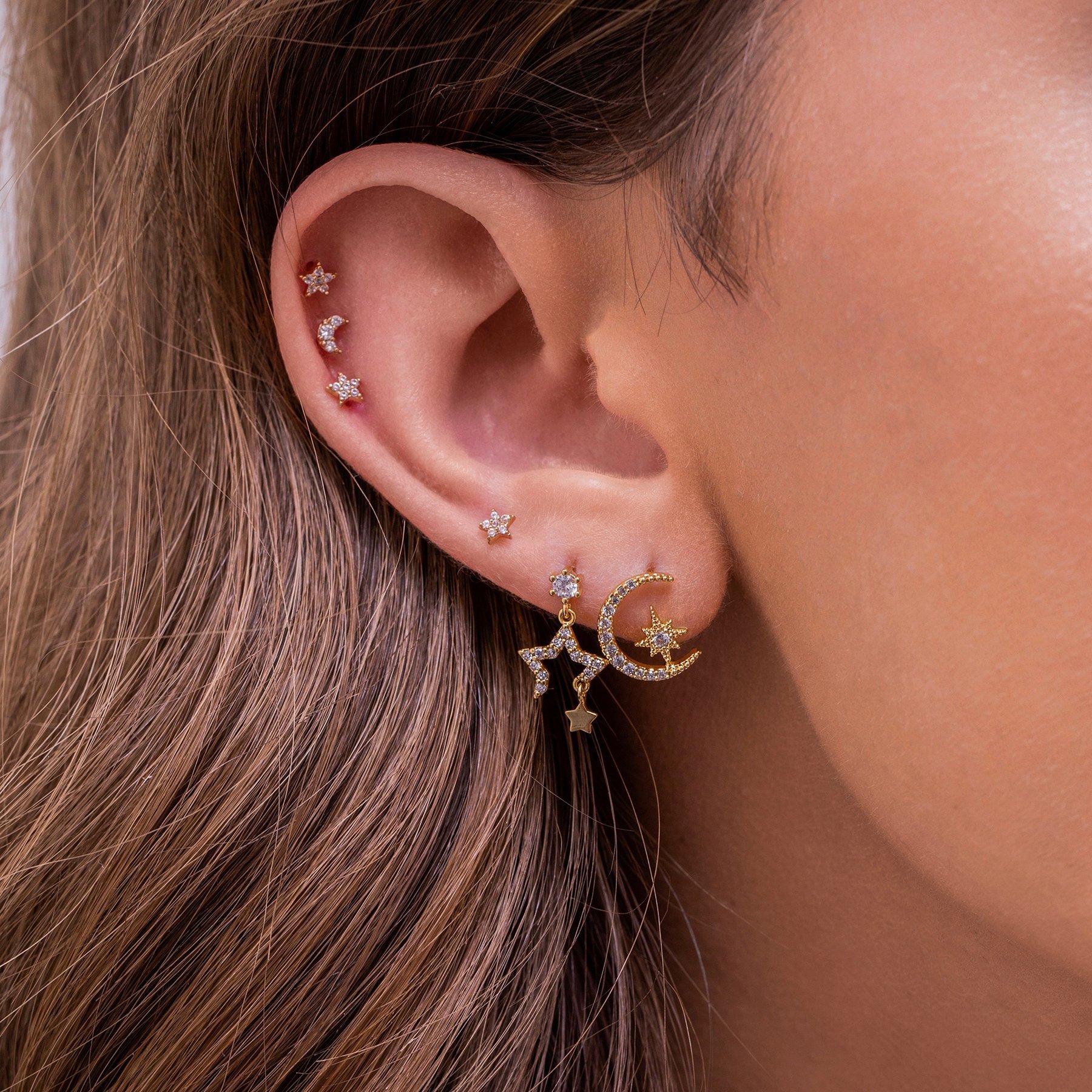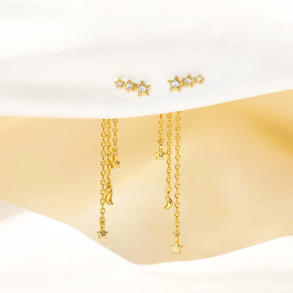 Fleepmart New Design Stainless Steel Cubic Zirconia Chain Hoop Earring For Women Star Moon Pendant Cartilage Earring Piercing Jewelry