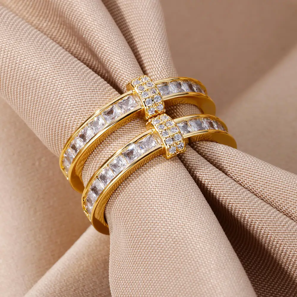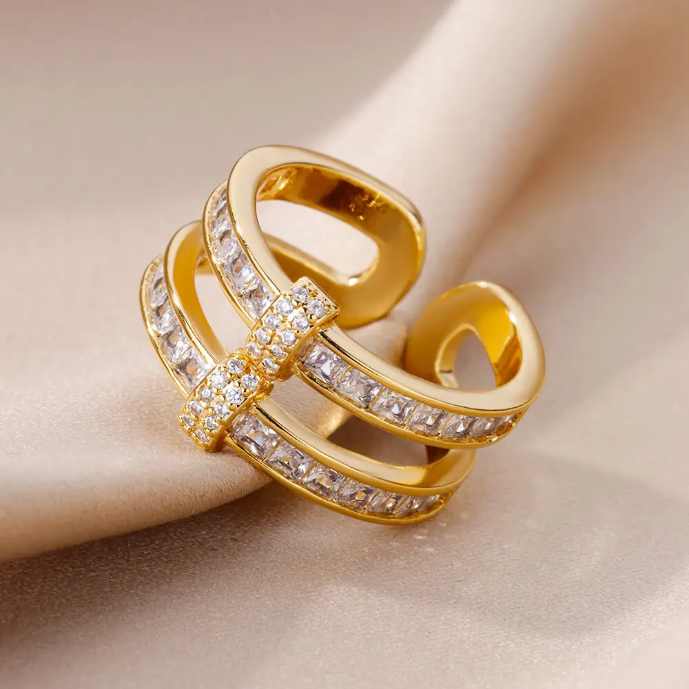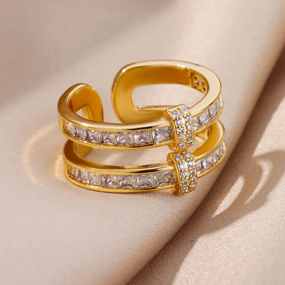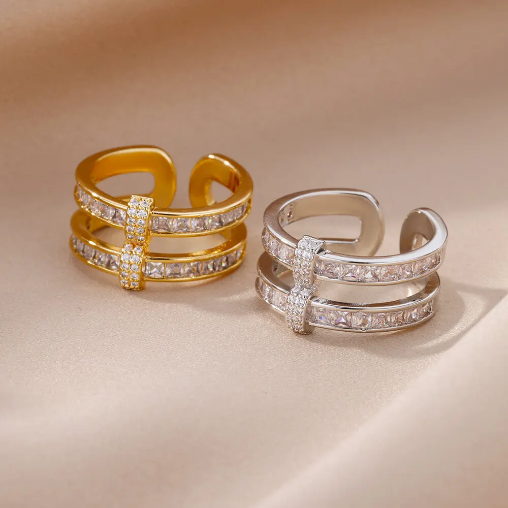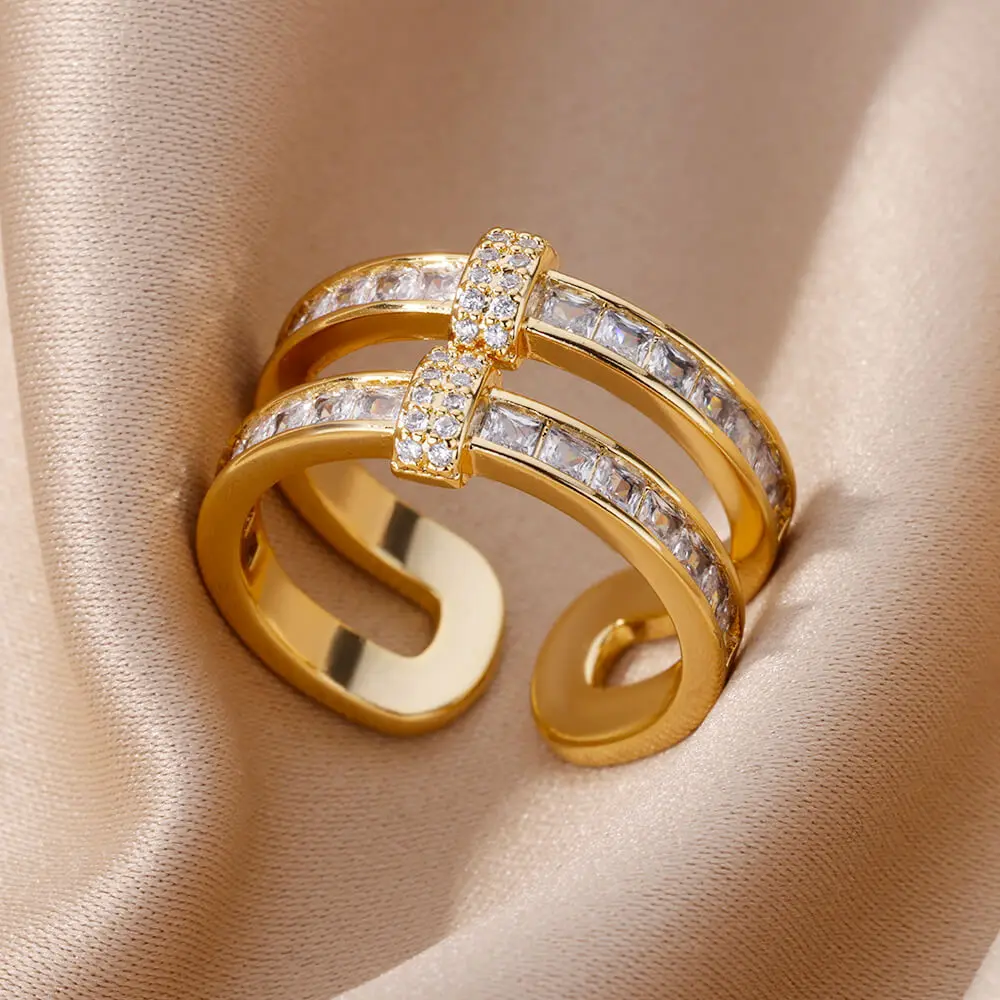Fleepmart New Design Zircon Rings for Women Girls Cubic Zirconia Adjustable Stainless Steel Ring 2024 Trend Luxury Wedding Jewelry anillosThere are no reviews yet