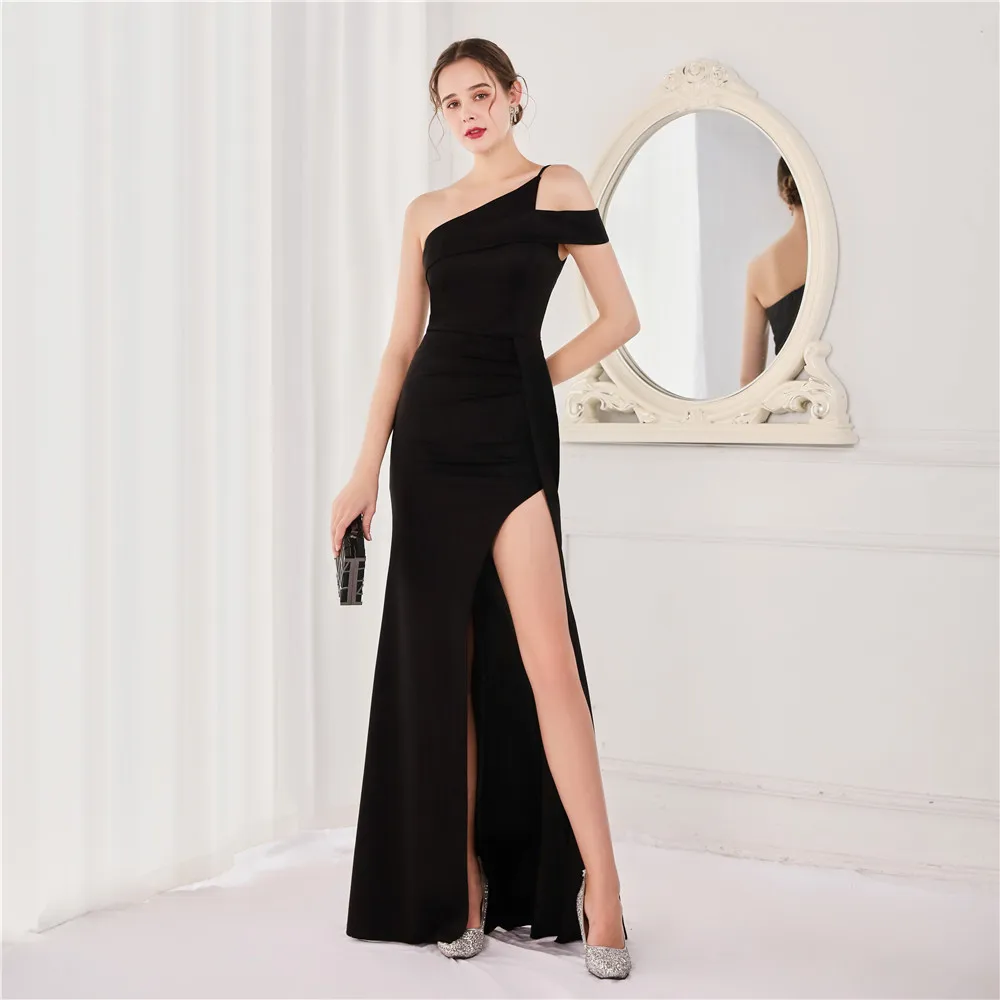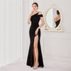 Fleepmart -new-elegant-off-the-shoulder-floor-length-evening-dress-sexy-hight-slit-2022-women-party-maxi-dress-long-knitting-gown