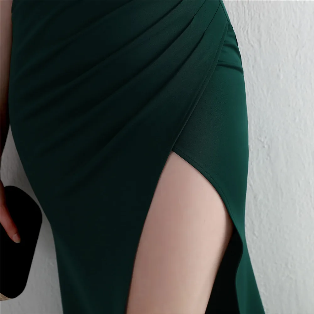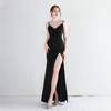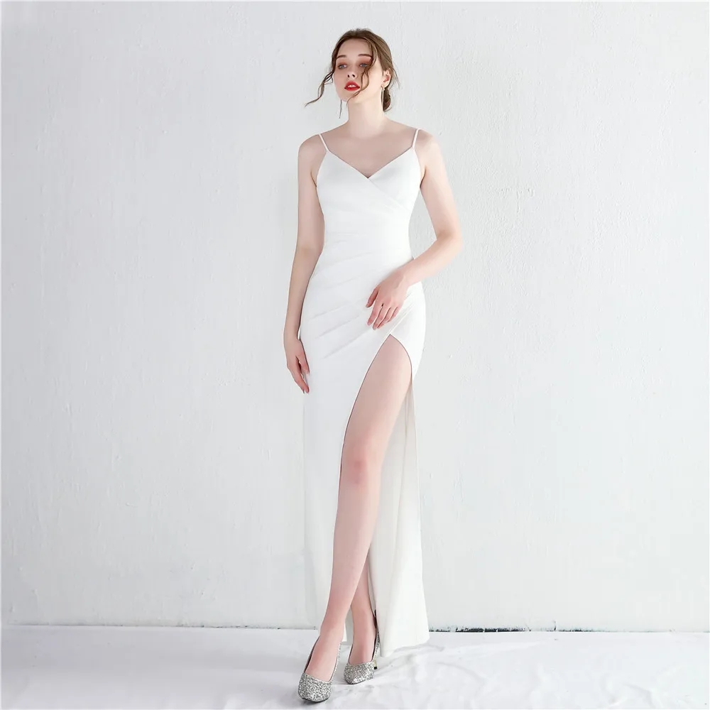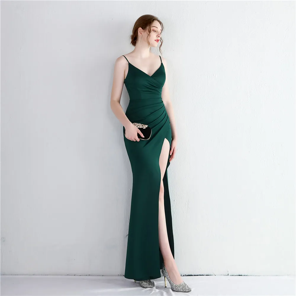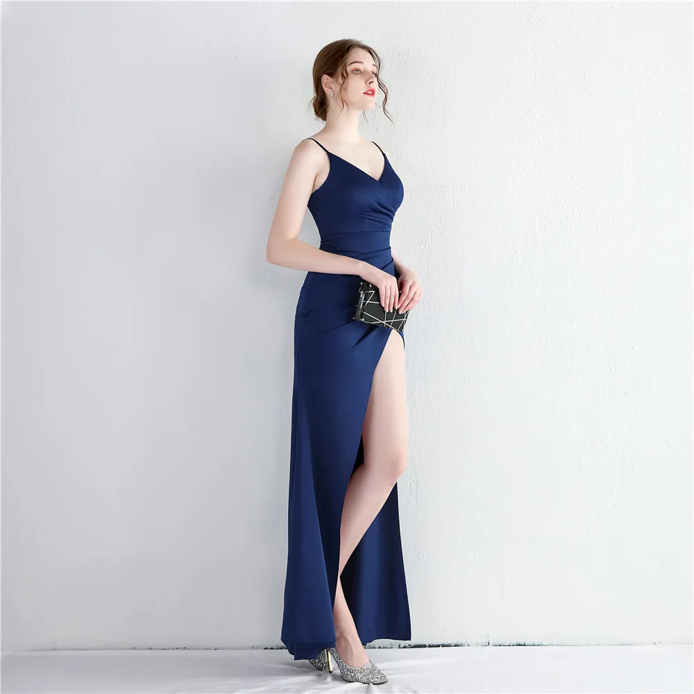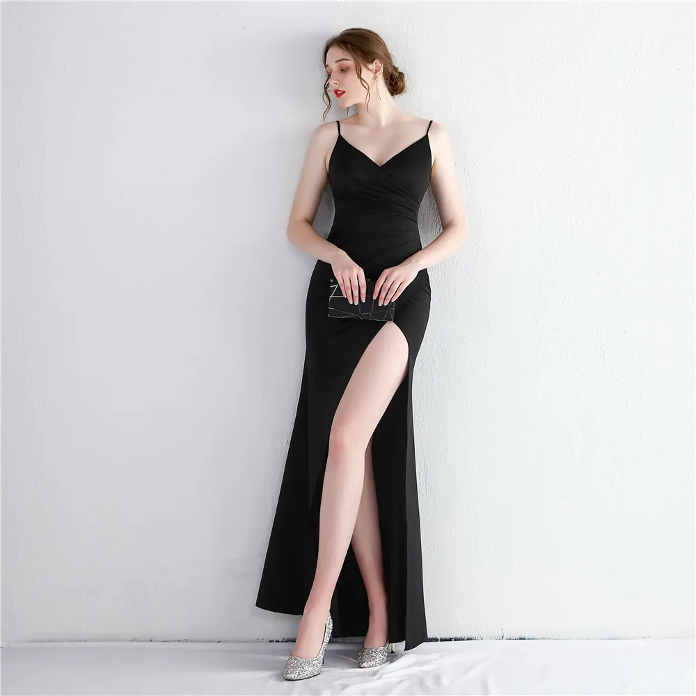 Fleepmart New Elegant Spaghetti straps Floor Length Evening Dress Sexy Hight Slit Women Party Maxi Dress Knitting Robe de soirée fmme