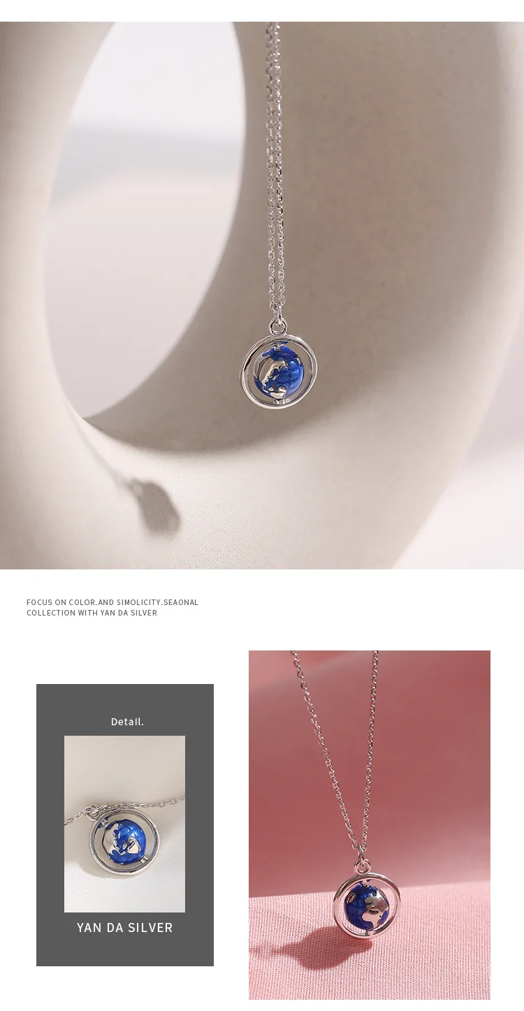 Fleepmart New Fashion Creative Globe Planet Silver Plated Jewelry Personality Colorful Epoxy Ball Popular Pendant Necklaces