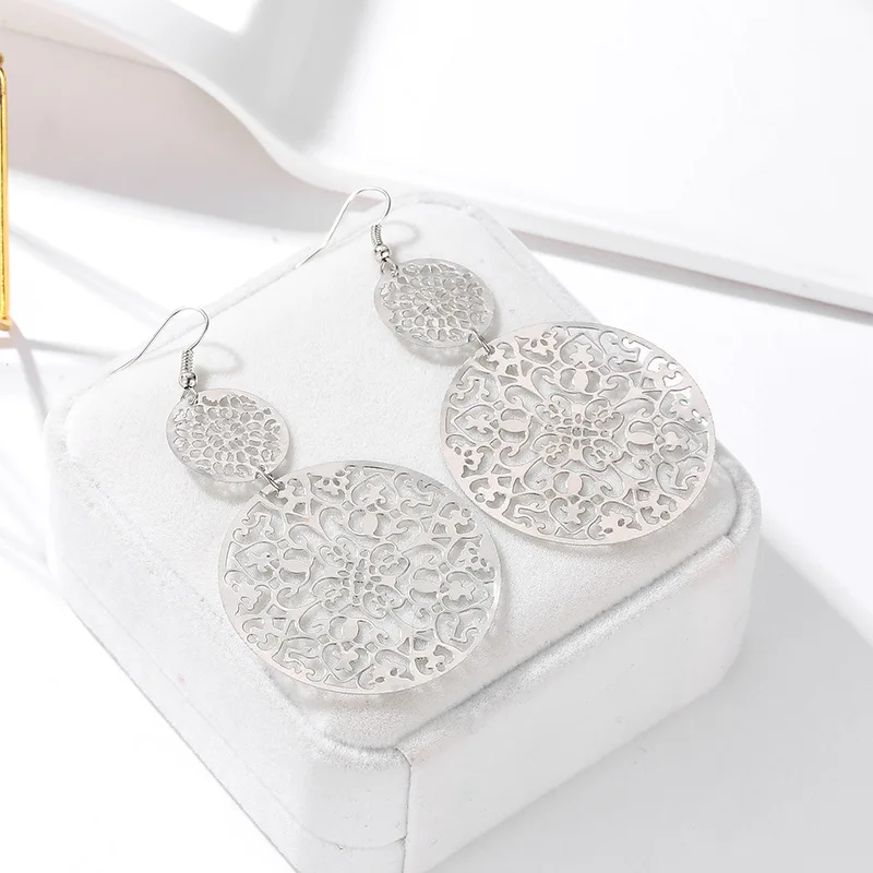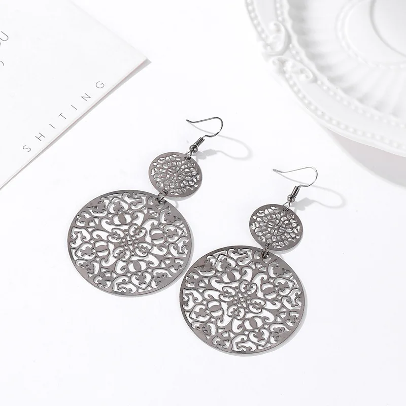 Fleepmart New Fashion European and American Geometric Round Vintage Hollow Disc Frosted Earrings Women 2024 Statement Girls Party Jewelry
