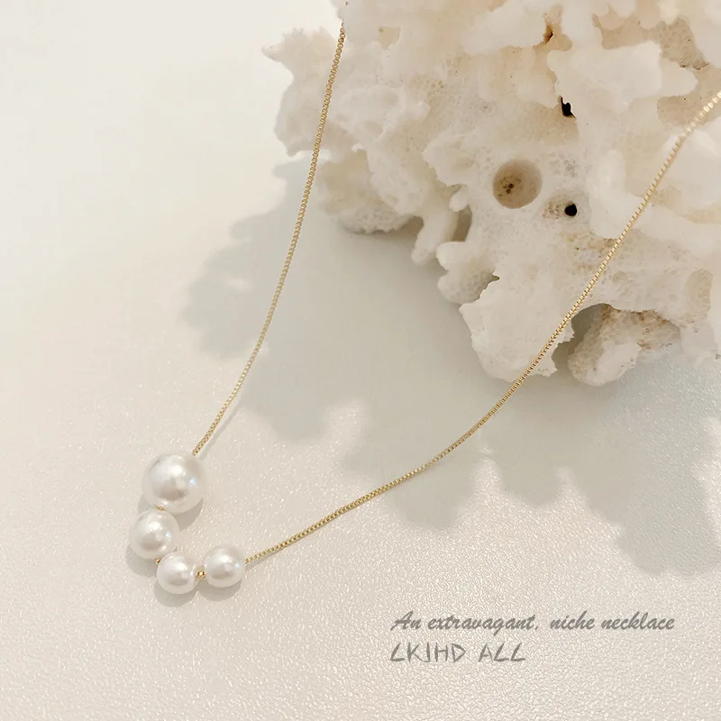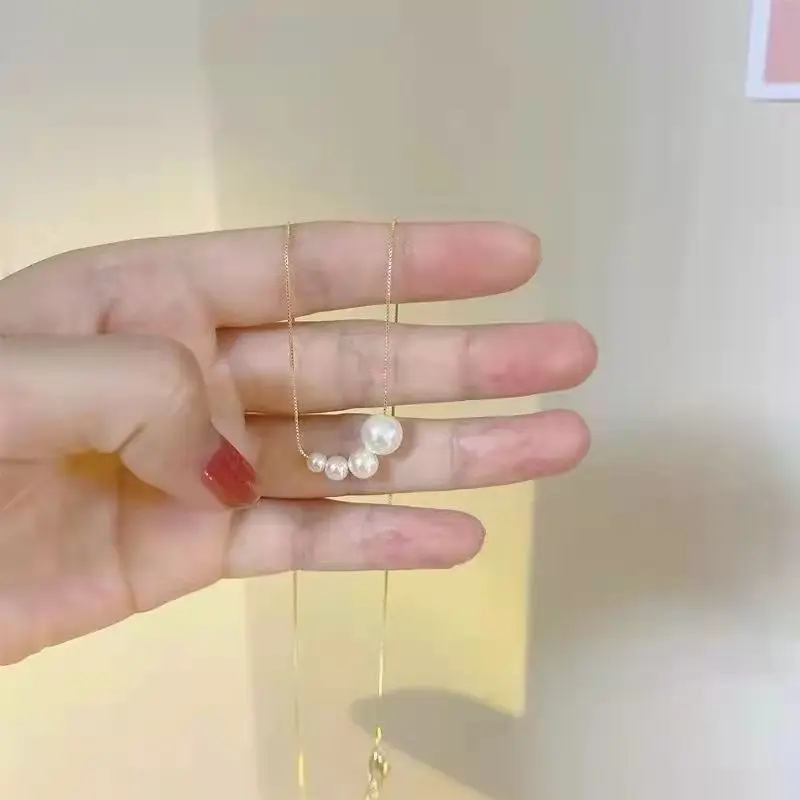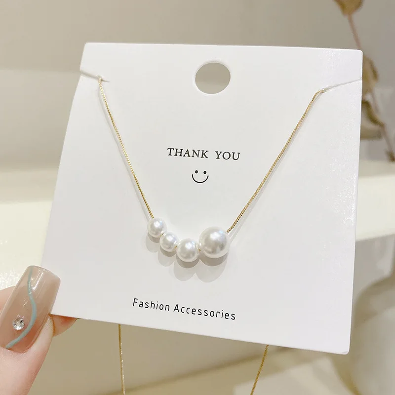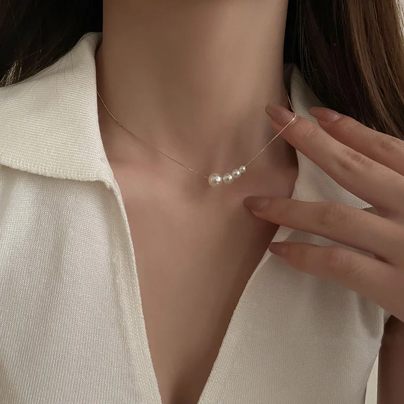 Fleepmart New Fashion Four Pearl Choker Necklaces Girl Summer Luxury Baroque Pearl Pendant Clavicle Chain For Women Jewelry Gift